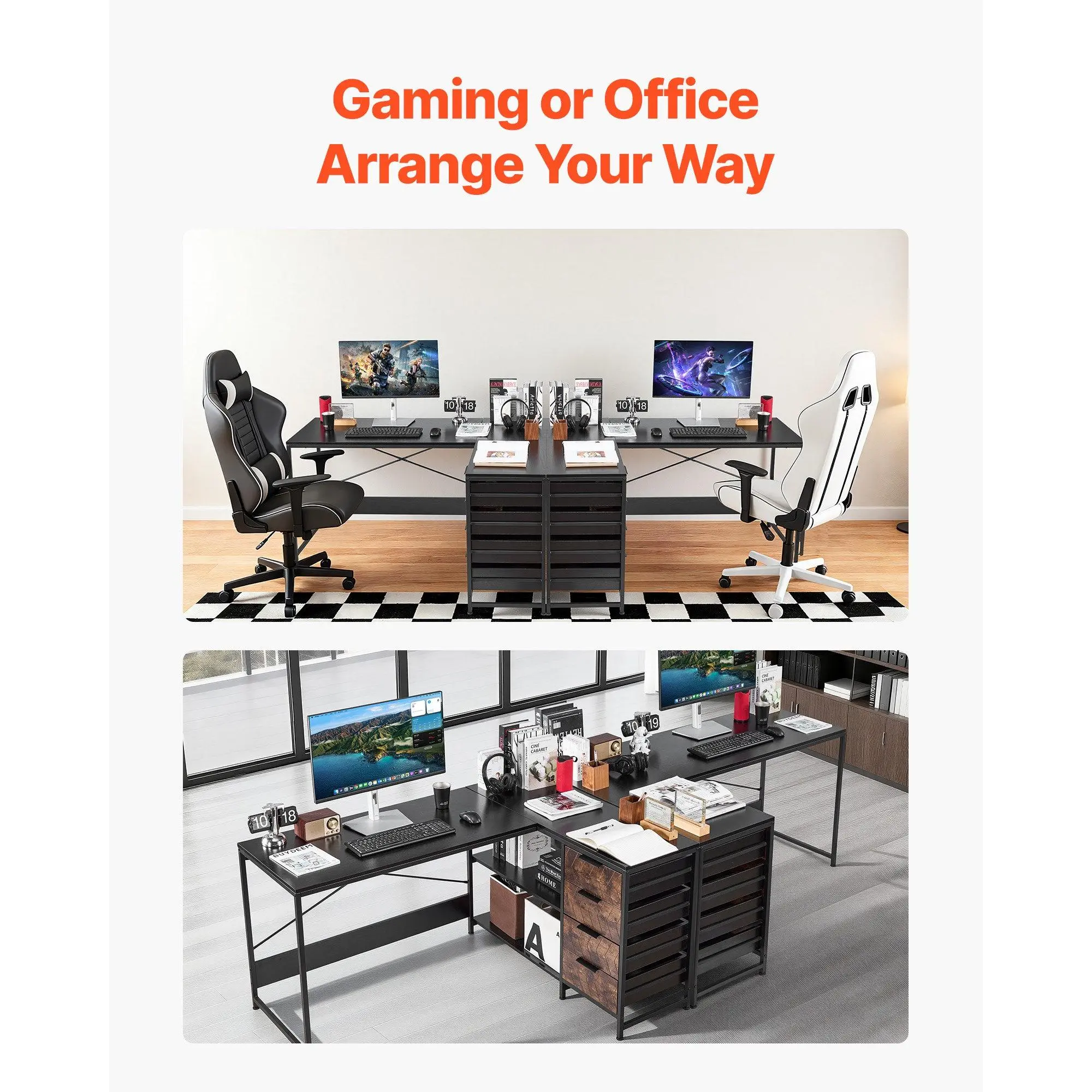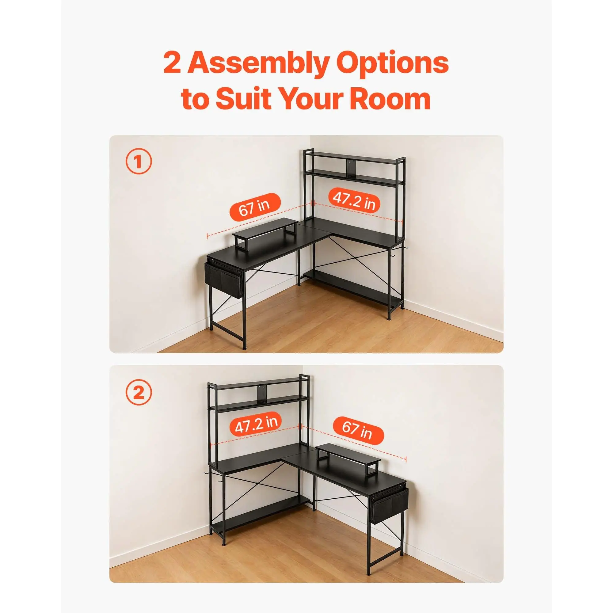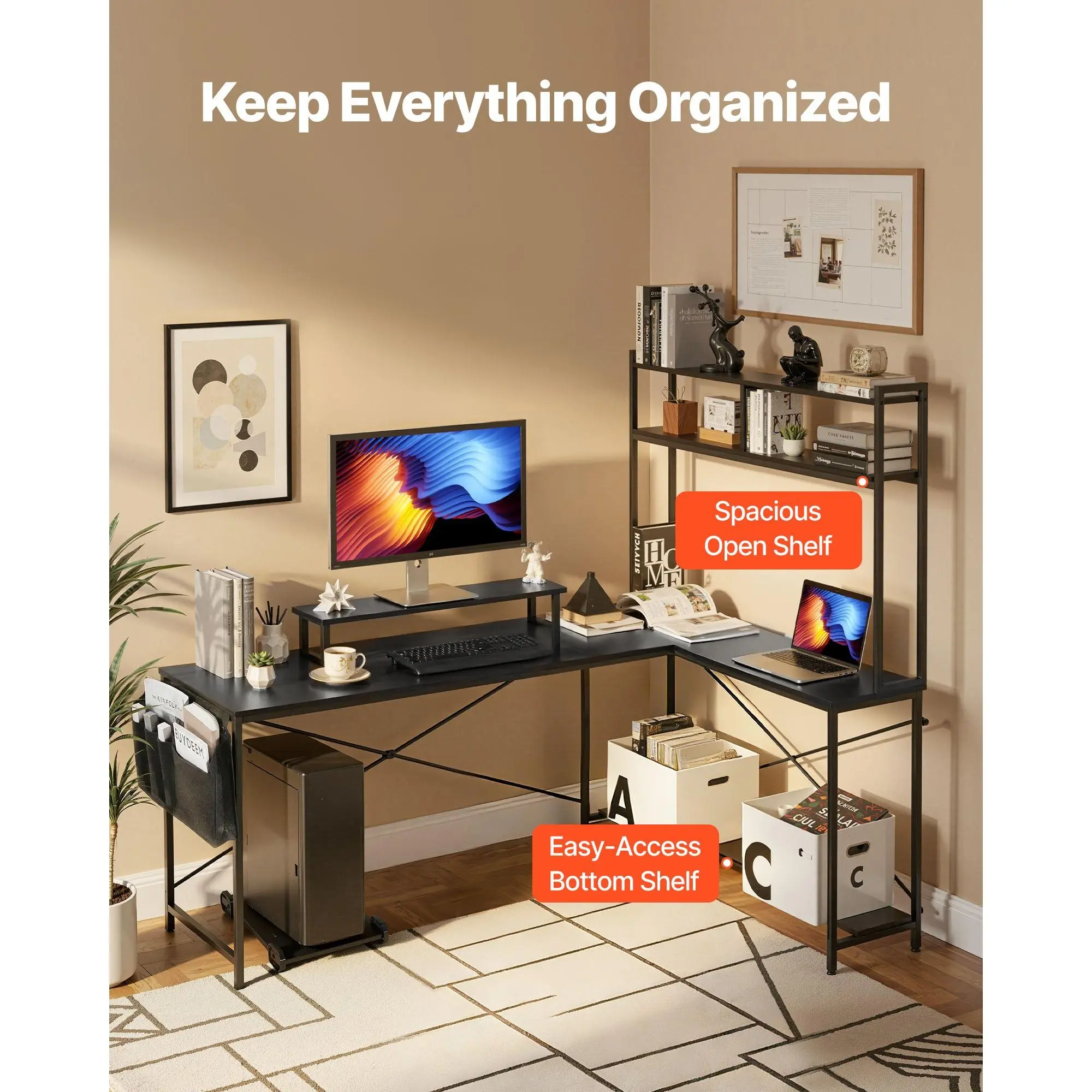 Combining modern style with practical storage and a solid build, this L-shaped PC desk upgrades your workspace with comfort and efficiency, featuring storage shelves, a stable monitor stand, and a movable CPU stand - ideal for work, study, or gaming.