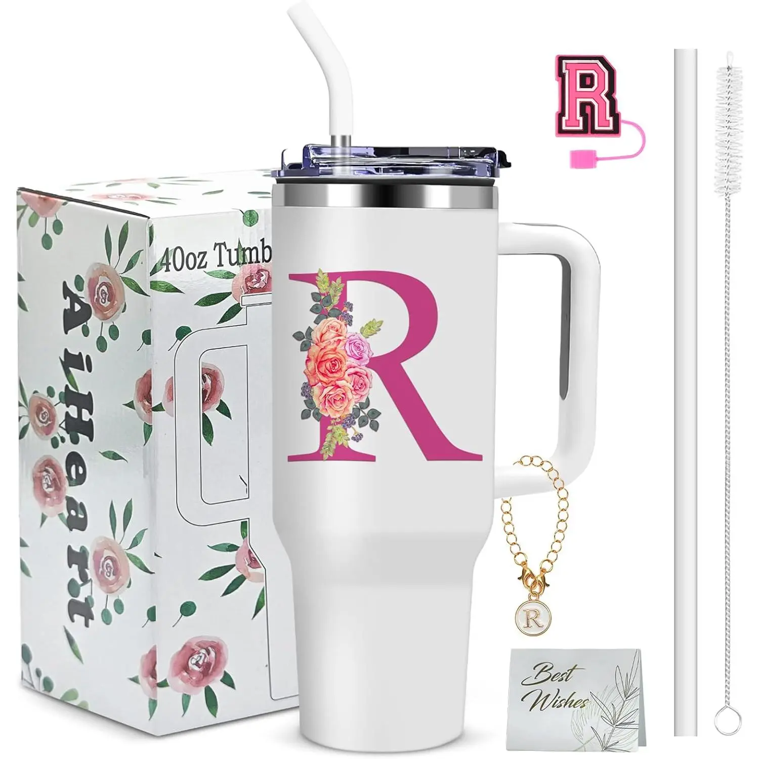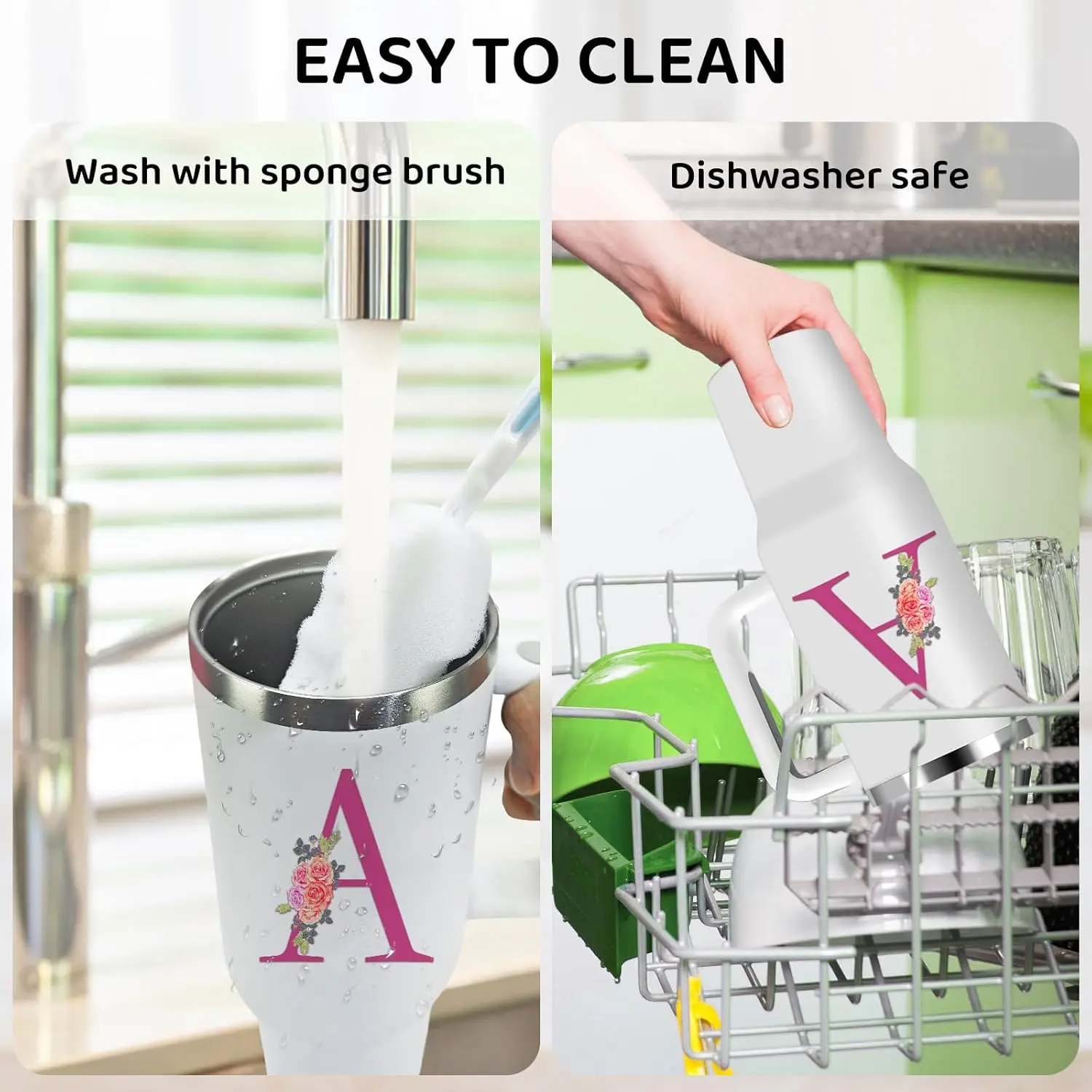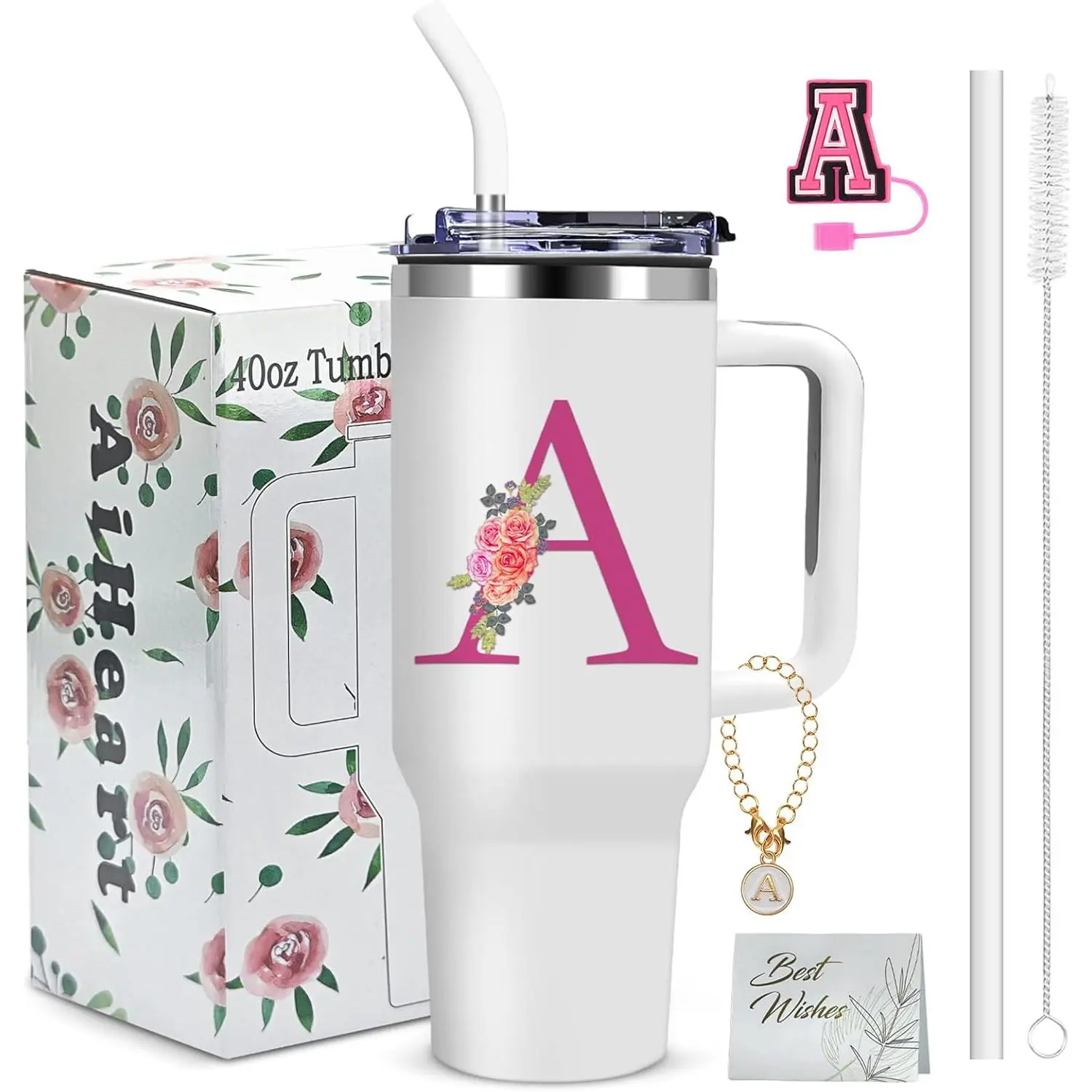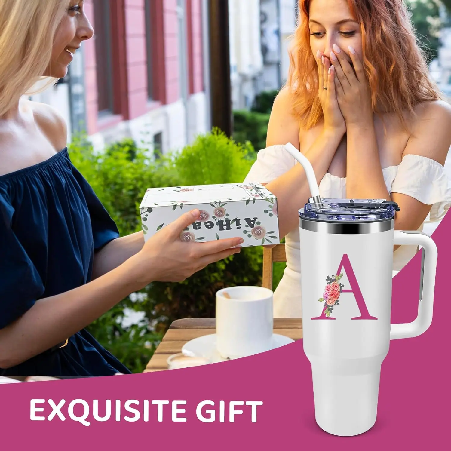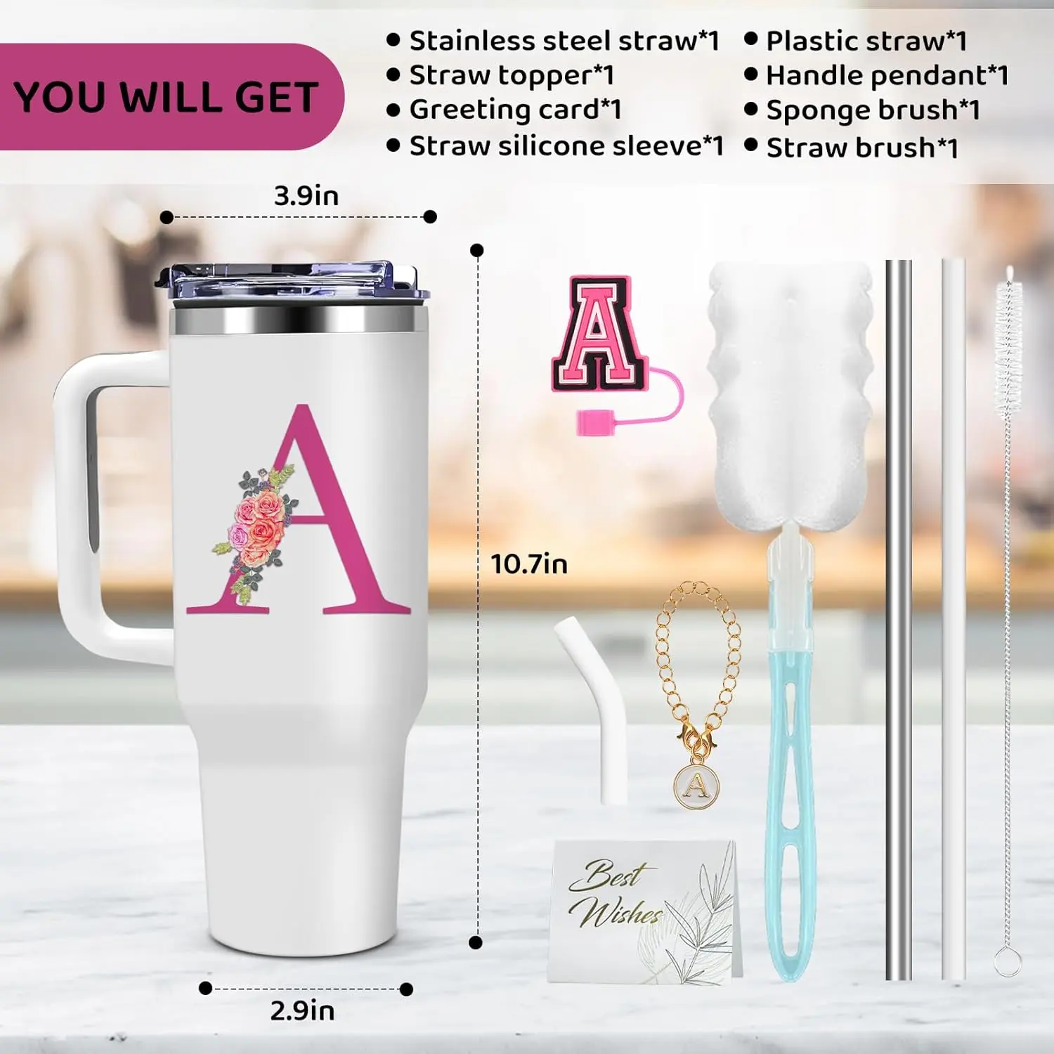 Monogrammed Gifts for Women,Wife,Initial Cup,Personalized for Birthday Gifts,Halloween,Thanks giving Day,Custom Tumbler with Handle 40oz-A