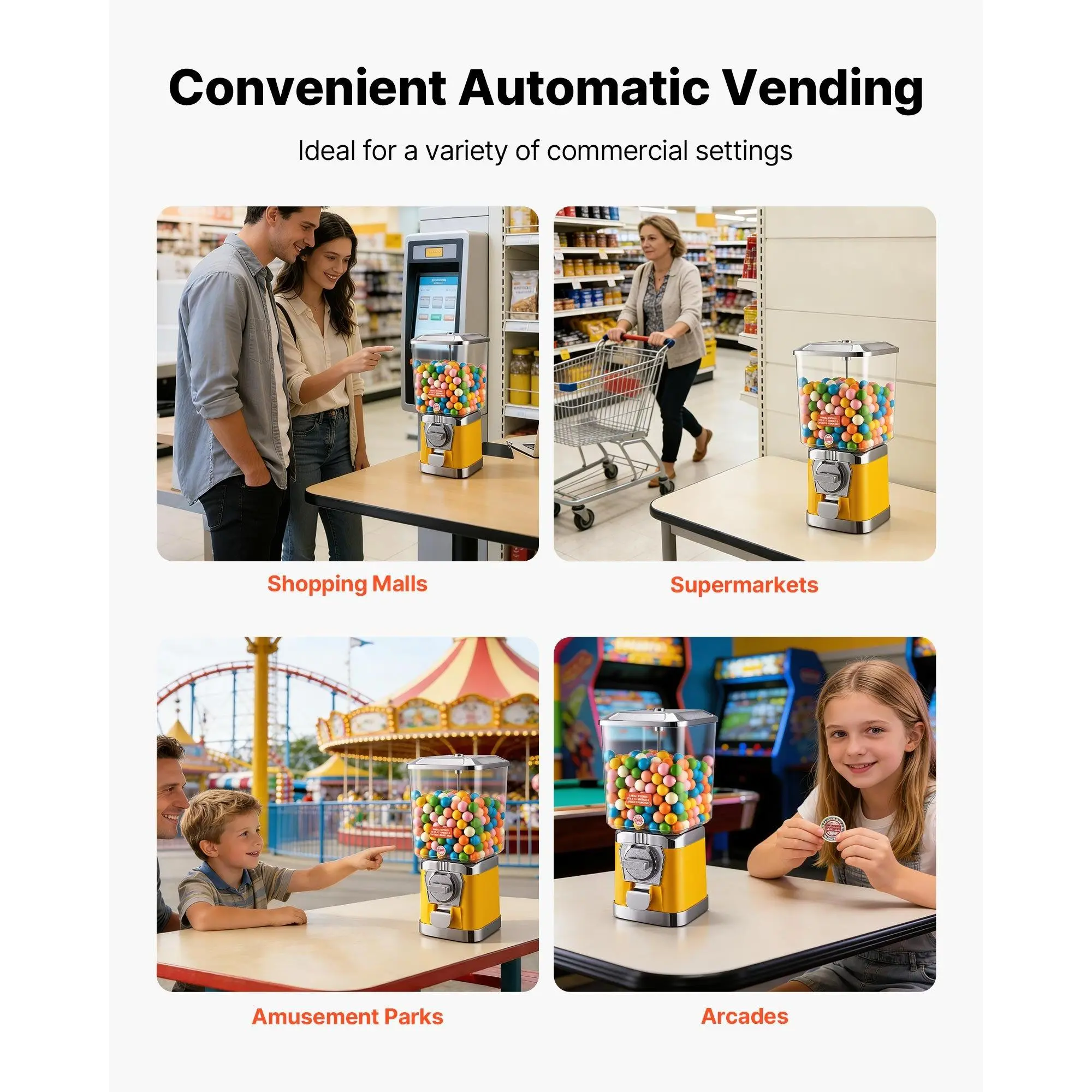 VEVOR Gumball Machine for Kids, 21 Height Home Vending Machine, PS Bouncy Balls Dispenser, Hold 180 Capsule Toys, Rectangle Bubble Gum Machine for Game Stores, Coin Operated Gumball Bank, Red