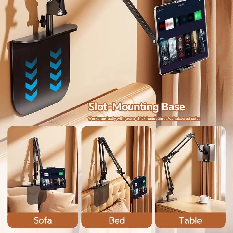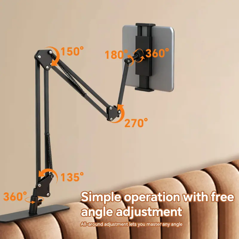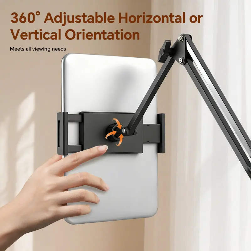 Metal Cantilever Stand For Phone & TabletMulti-angle Adjustable For Bedside Streaming, Office Work, Or Online Classes. Instantly Folds Flat To Save Space. Compatible With IPad, IPhone, Modern Design With Durable Construction For Reliable Support.