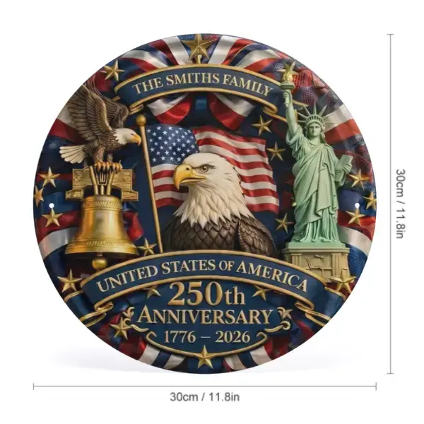 Custom America 250th Anniversary Door Sign, Personalized Family Name Patriotic Door Hanger, USA 1776–2026 Fourth of July Decoration, Independence Day Front Door Decor Design 8*8inch Ornaments