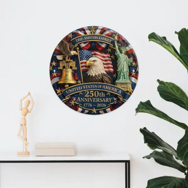 [Personalized Family Name: This door sign features a personalized family name, making it a unique patriotic decoration. 🏡, Patriotic Door Hanger: Perfect for Fourth of July and Independence Day celebrations, this door hanger adds a festive touch to your front door. 🎉, USA 1776–2026: Celebrate the 250th anniversary of the USA with this decorative sign. It's an ideal decoration for the Fourth of July. 🇺🇸]