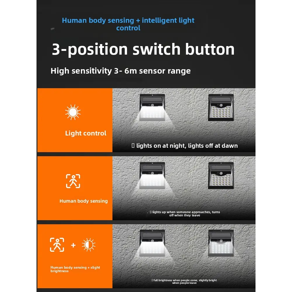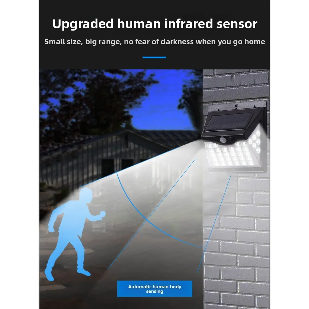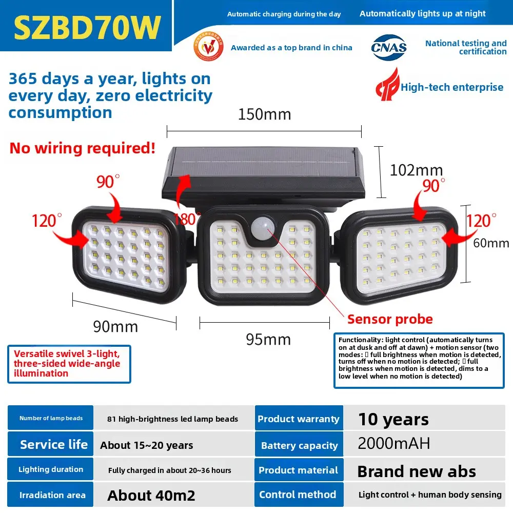 Cross-border solar outdoor garden light 228LED three-head light waterproof street light with human body sensor for road and garden wall lighting