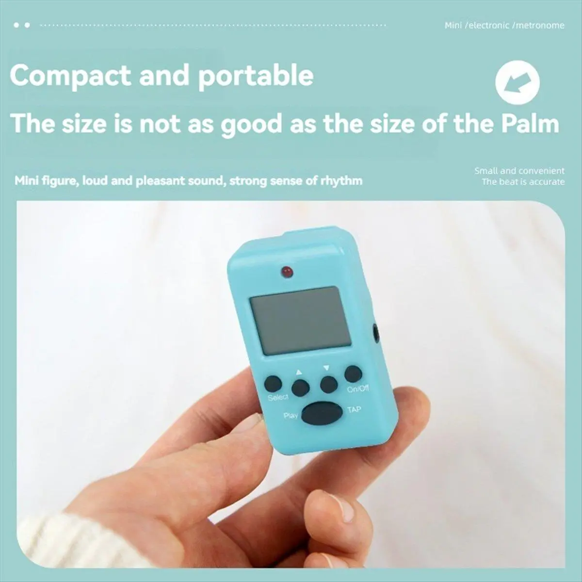 1. Compact and Portable: The electronic metronome is incredibly compact, smaller than an adult's palm, making it highly portable. Its small size allows you to easily carry it in your backpack, making it extremely convenient for practicing music on the go.