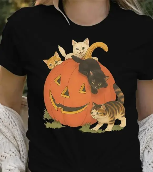 Retro 90s Cat Halloween Tee Featuring Vintage Jack-o-lantern Design Perfect for Fall Cat Lovers