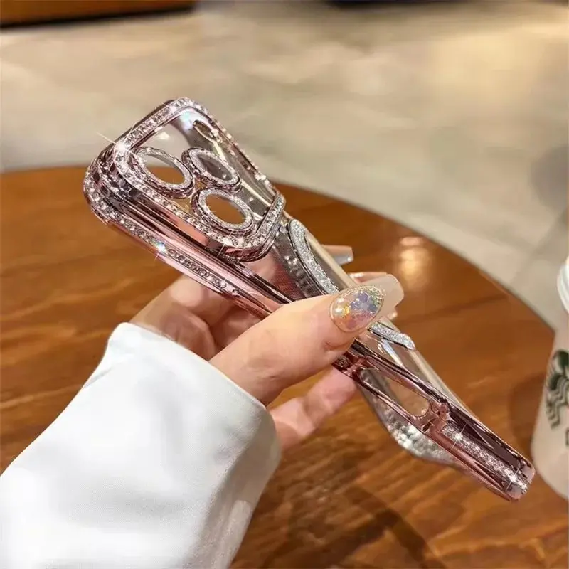 High-grade Glitter Rhinestones Phone Case For iPhone 17 16 15 11 12 13 14 Pro Max Plus Magsafe Magnetic Clear Lens Protect Cover