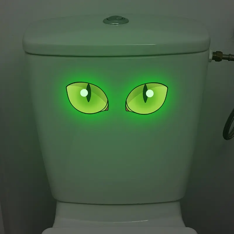 2pcs Creative Night Light Eye Bathroom Toilet Stickers, Waterproof Wall Decals, Holiday Decor, Seasonal Home Decoration, One-Time Use