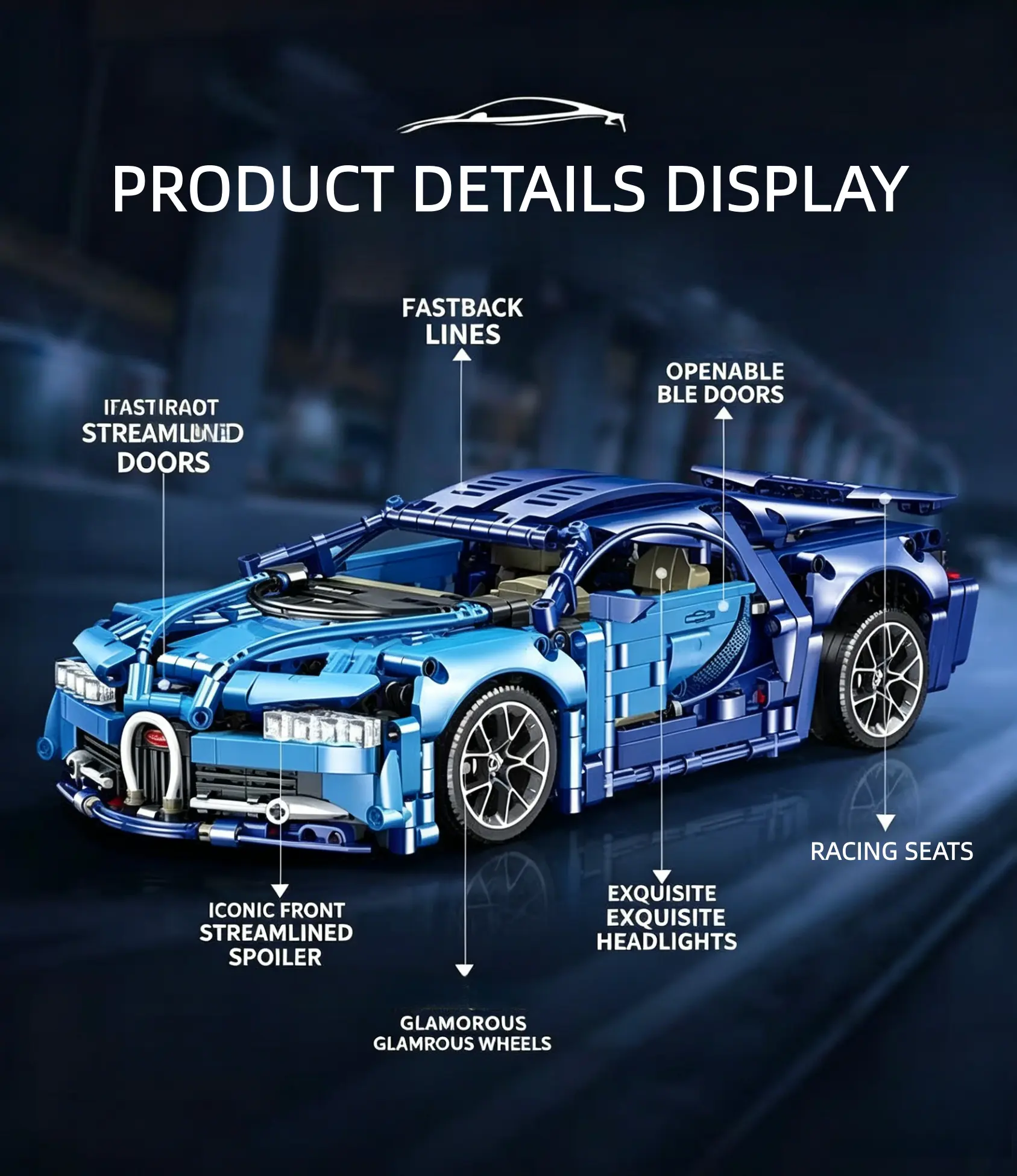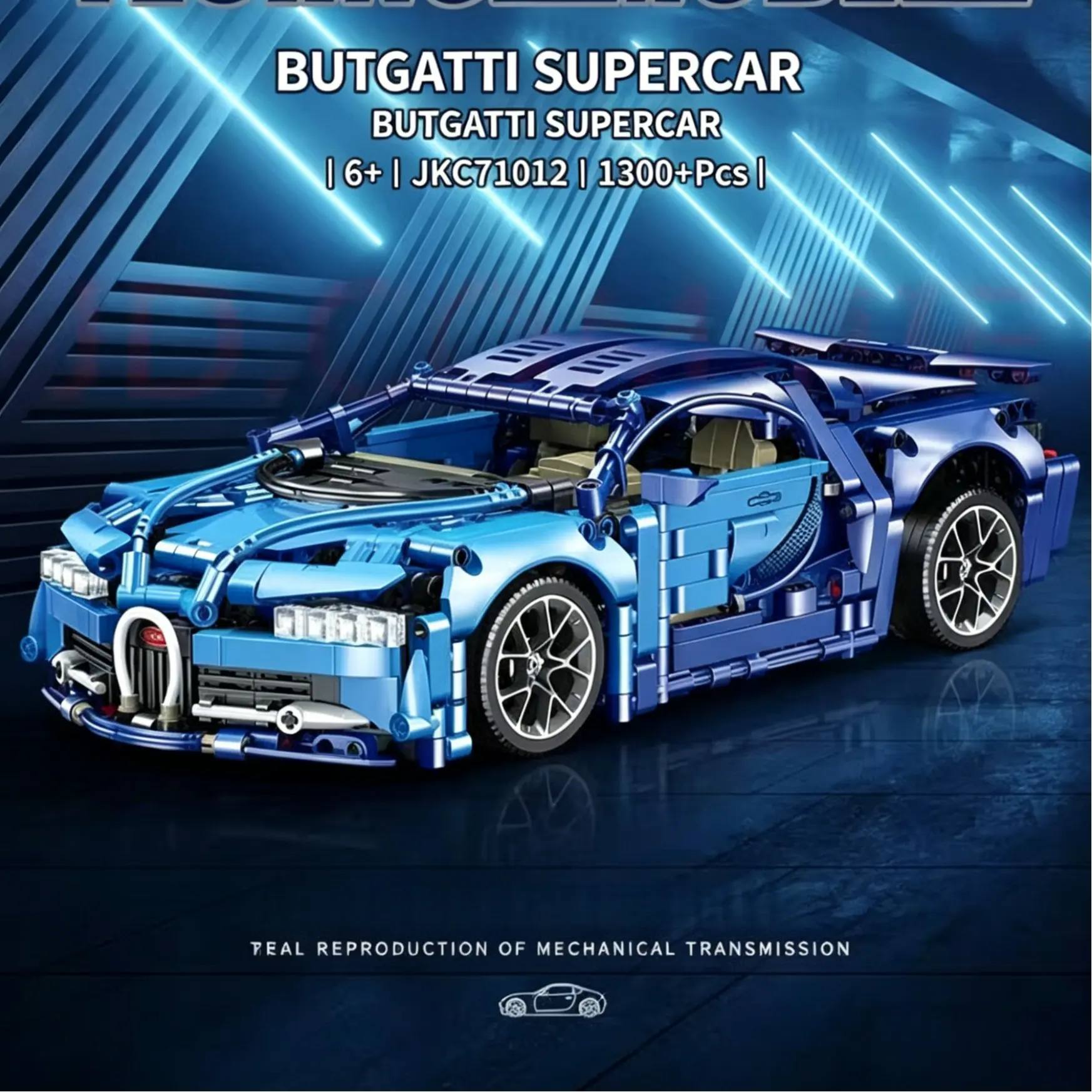Building block 1:14 RC Blue Supercar Kit – 1.3K+ Pcs, Dual Motor & DIY LEDs | 2.4GHz Remote, Display Case | STEM Gift for Adults & Collectors Perfect Holiday Gift