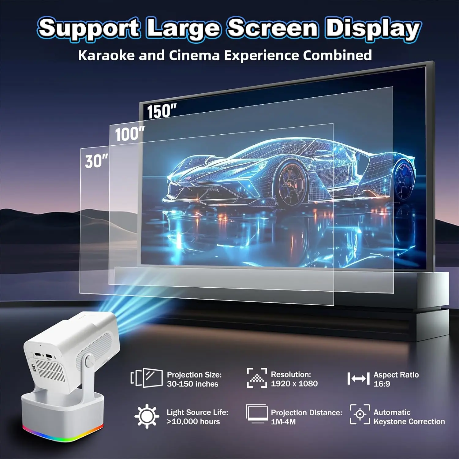 ·2×8W Stereo Speakers + 30–150 Inch Screen Support: The HCS350 PLUS Projector comes with built-in dual 8W stereo speakers, which deliver balanced and layered audio. Whether it's movie dialogue and sound effects or karaoke accompaniment and vocals, every detail is rendered with crystal clarity. It supports an adjustable projection size from 30 to 150 inches, accommodating a projection distance of 1 to 4 meters to create a personalized home theater experience