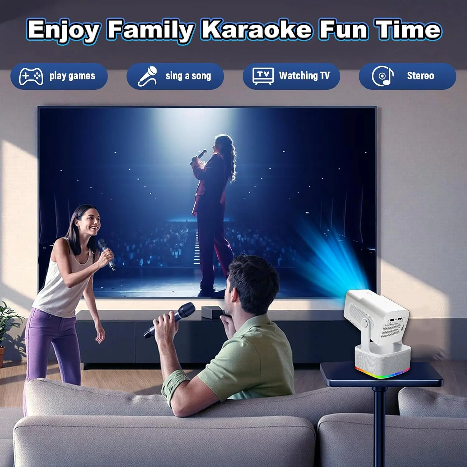 ·3 Modes--Gaming, KTV & Cinema: HCS350 PLUS Projector features a 3-core entertainment design, with built in 20,000+ retro games and 17 emulators, plug and play for easy connection. Comes with 2 rechargeable microphones for cable-free singing. Equipped with a smart voice remote, supporting voice commands to quickly select movies, play songs and check the weather. Gather with family and friends to enjoy thrilling home game battles, lively karaoke parties or immersive home cinema time