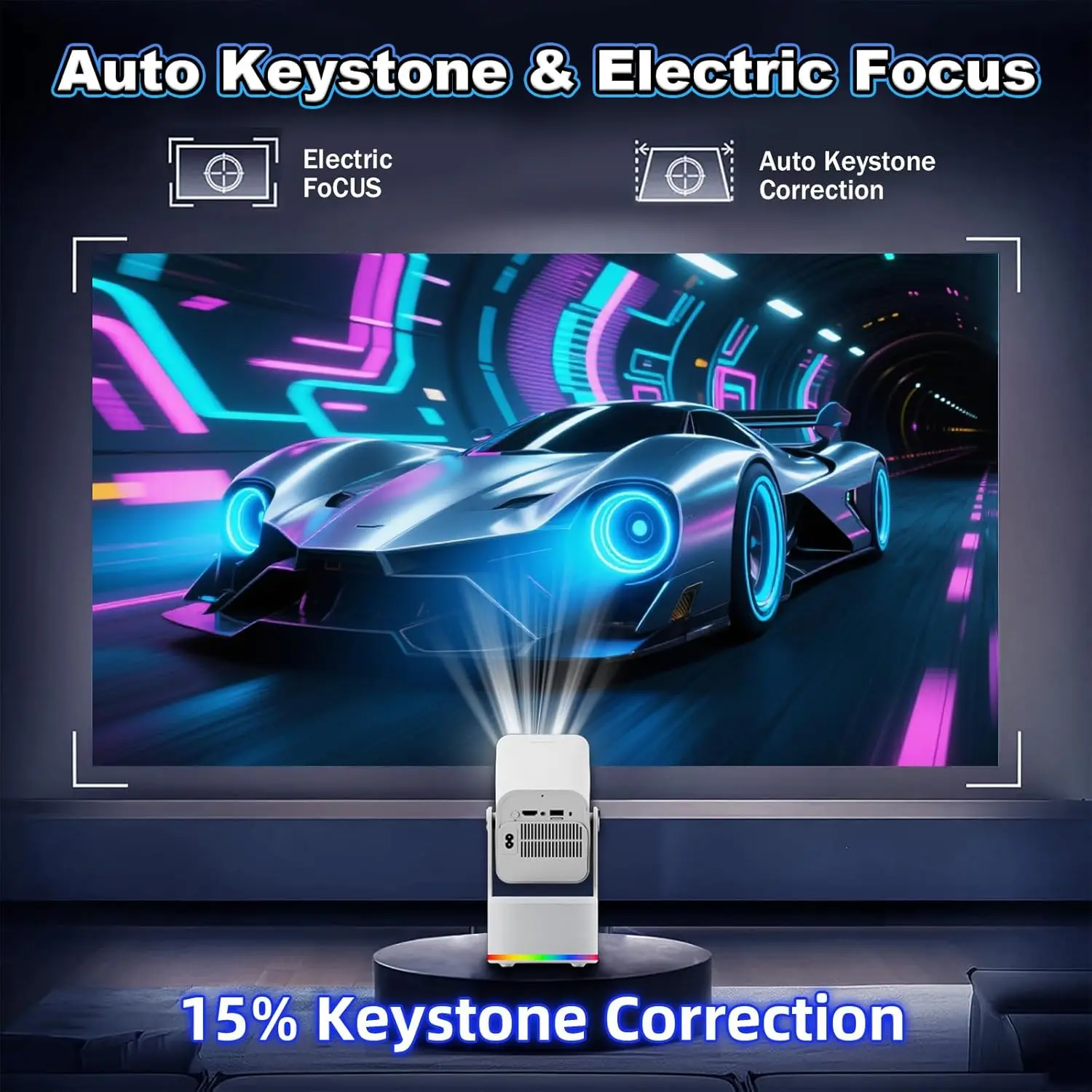 ·Auto Keystone Correction + 270° Adjustable Stand + Compact Body: HCS350 KTV/PLUS Projector measures only 210×105×122MM, compact and portable. Features auto keystone correction, which automatically adjusts tilted images to a square, clear rectangle on startup, eliminating manual adjustments. The 270° multi-angle adjustable stand flexibly fits projection needs in bedrooms, living rooms and other scenarios