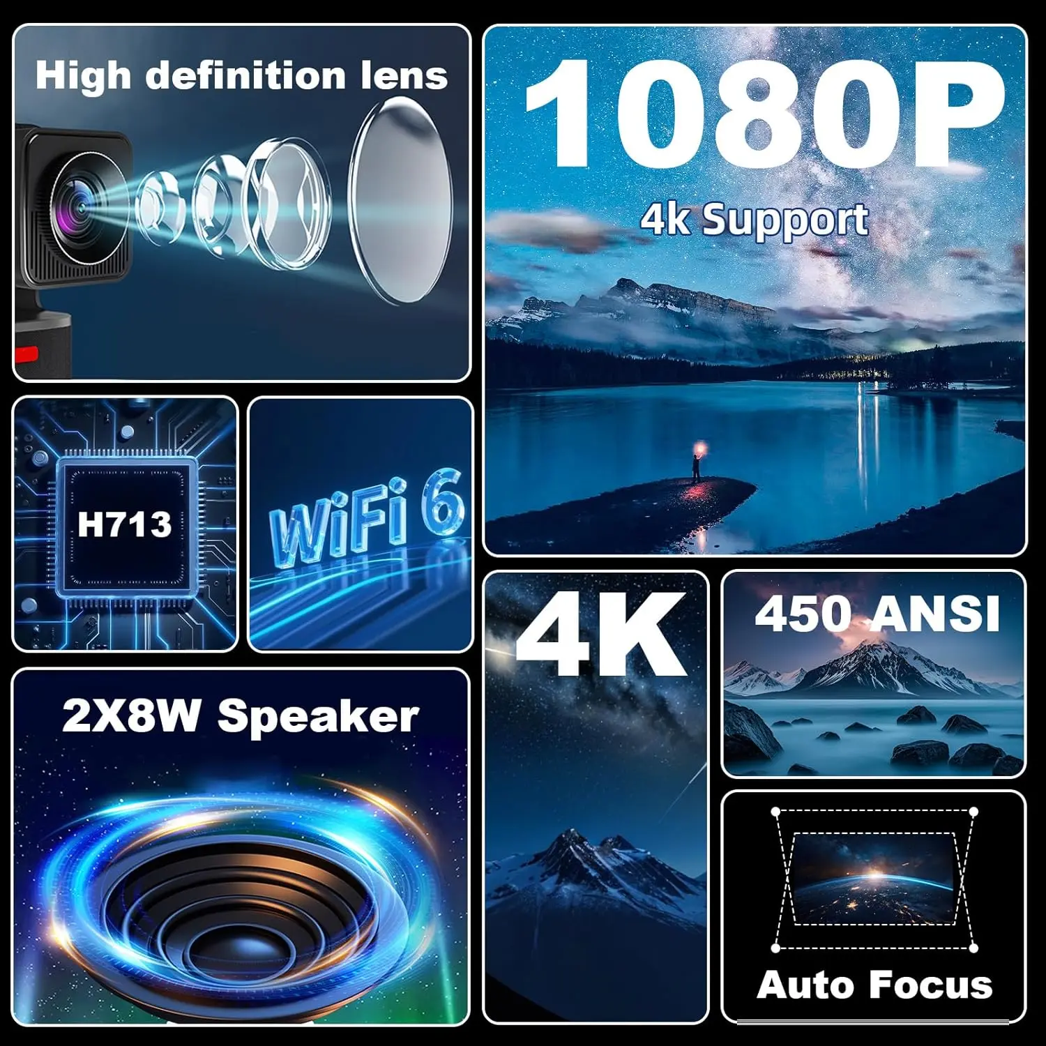 ·Android 11 + H713 Quad-Core Chip + Dual-Band WiFi + Bluetooth: HCS350 PLUS Smart Wireless Projector is equipped with Android 11 and H713 quad-core chip, providing stable, smooth performance for immersive movie viewing and gaming. Supports 2.4G+5G dual-band WiFi for stronger, more stable signals; built-in Bluetooth allows efficient device pairing to enhance user experience