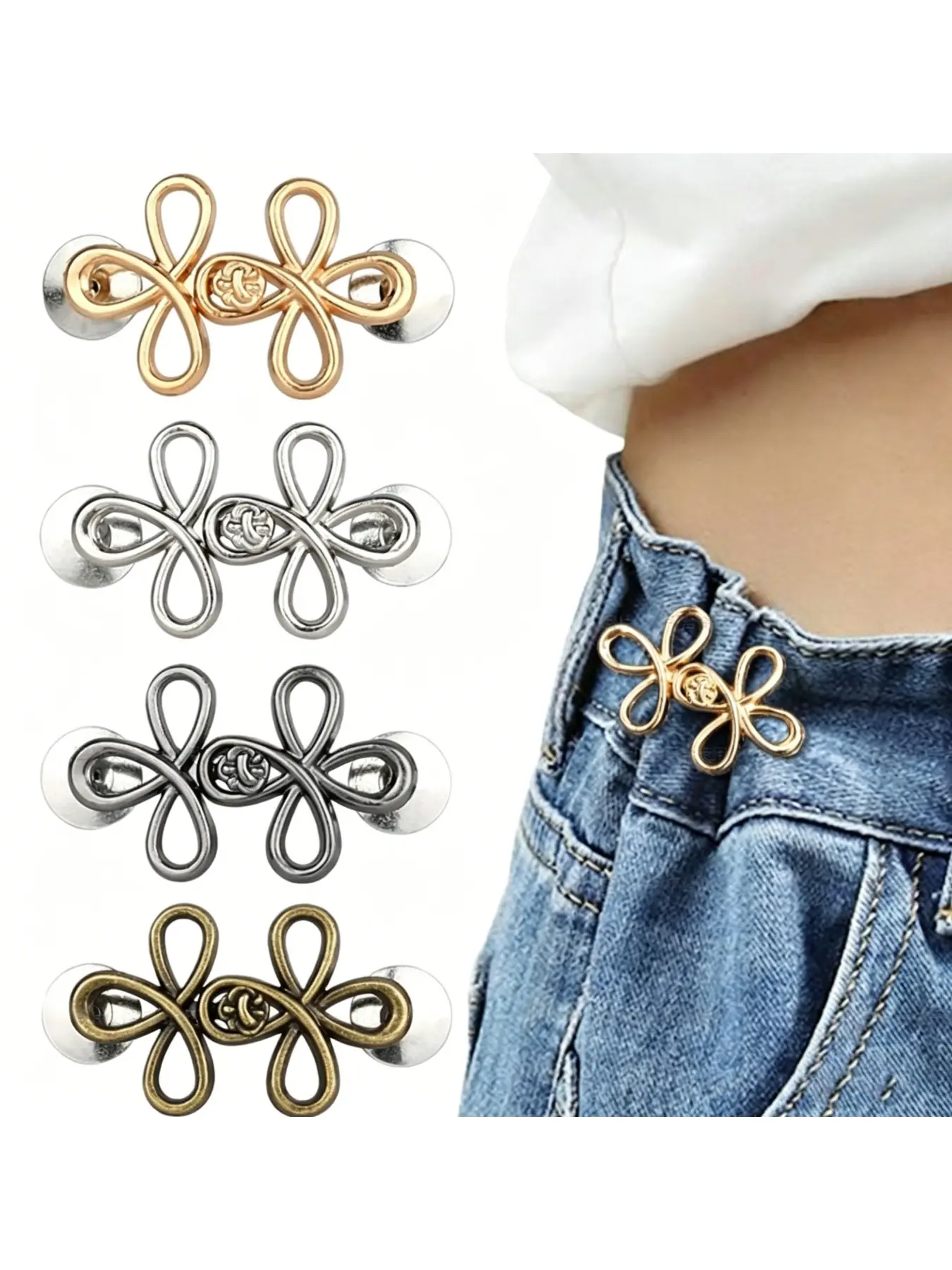 Luck Knot Design Waist Button, 4 Counts/set Detachable No-sew Waist Button, Fashionable Clothes Accessories for Women & Men