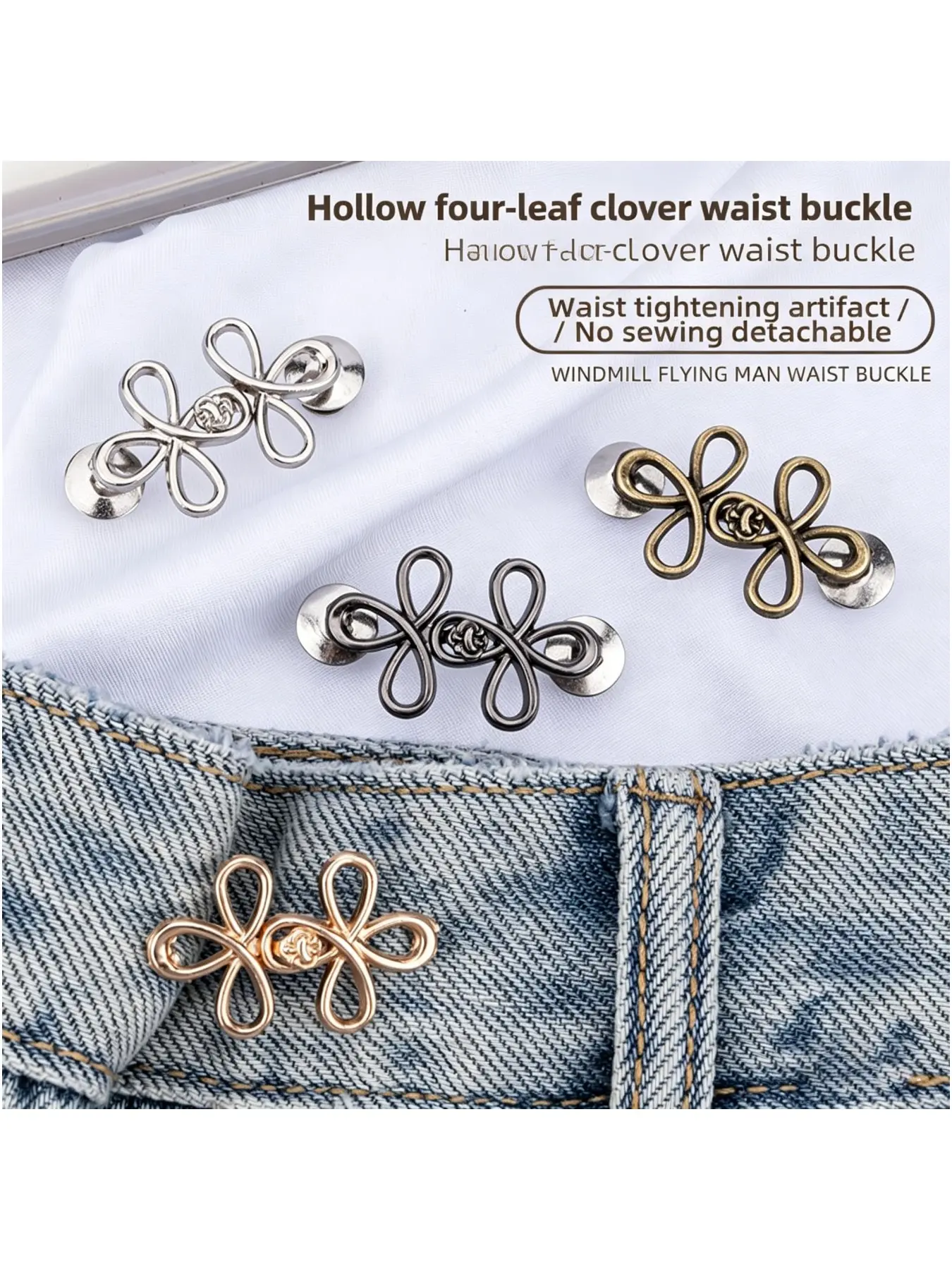 Adjustable Pants Tighteners, Butterfly Denim Button Loose Jeans Clips, Detachable Waistband Straps, Seamless Design for All Seasons