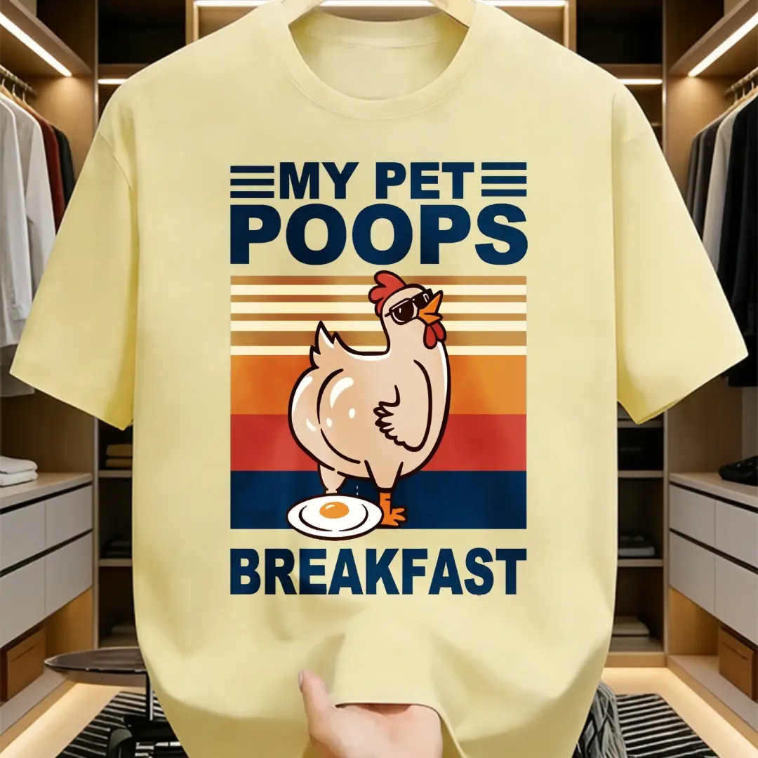 5. US Local Shipping | Funny 'My Pet Poops Breakfast' Chicken Tee | Men's T-shirt | Farm Life Humor | The ultimate shirt for every backyard chicken dad! #ChickenLover #FunnyTee