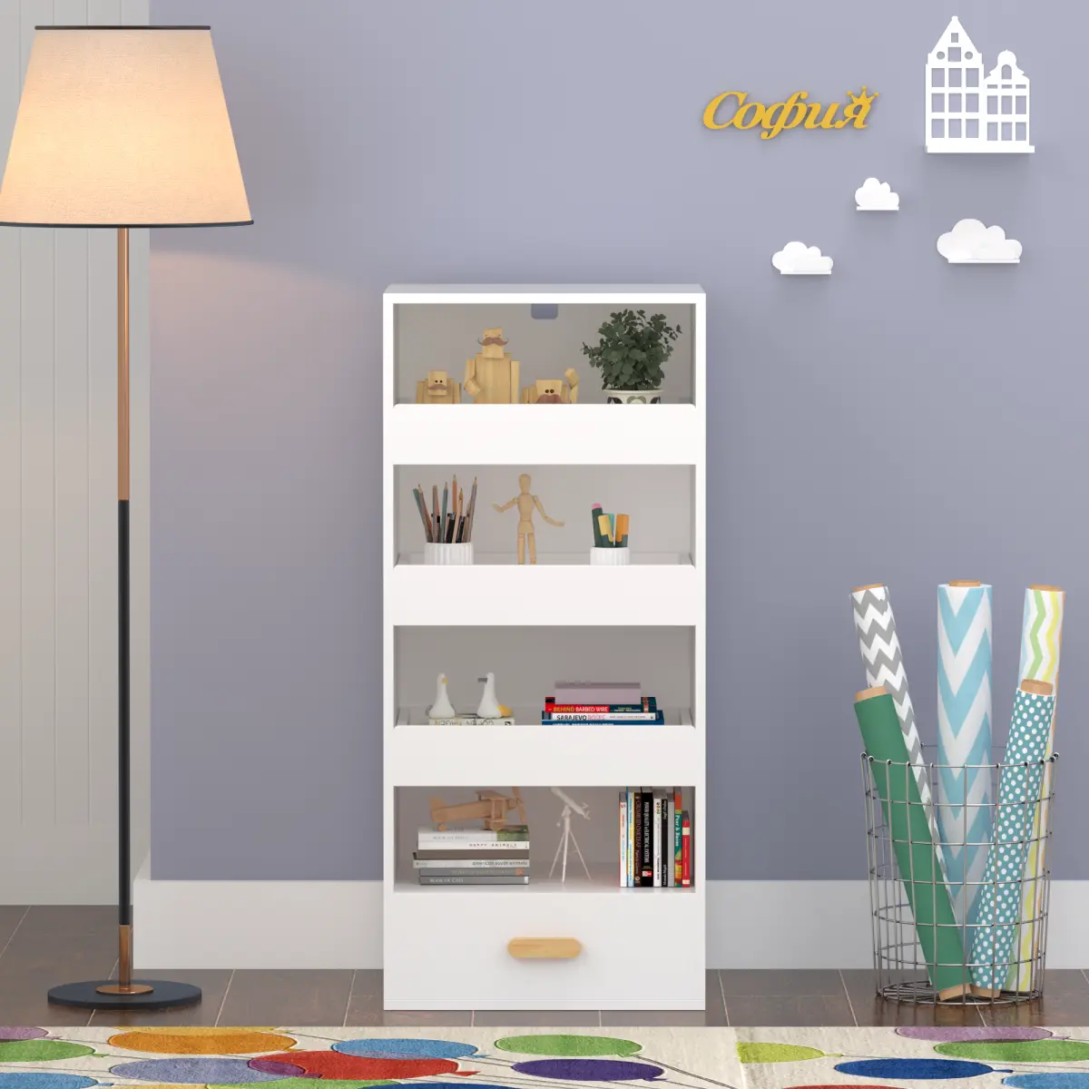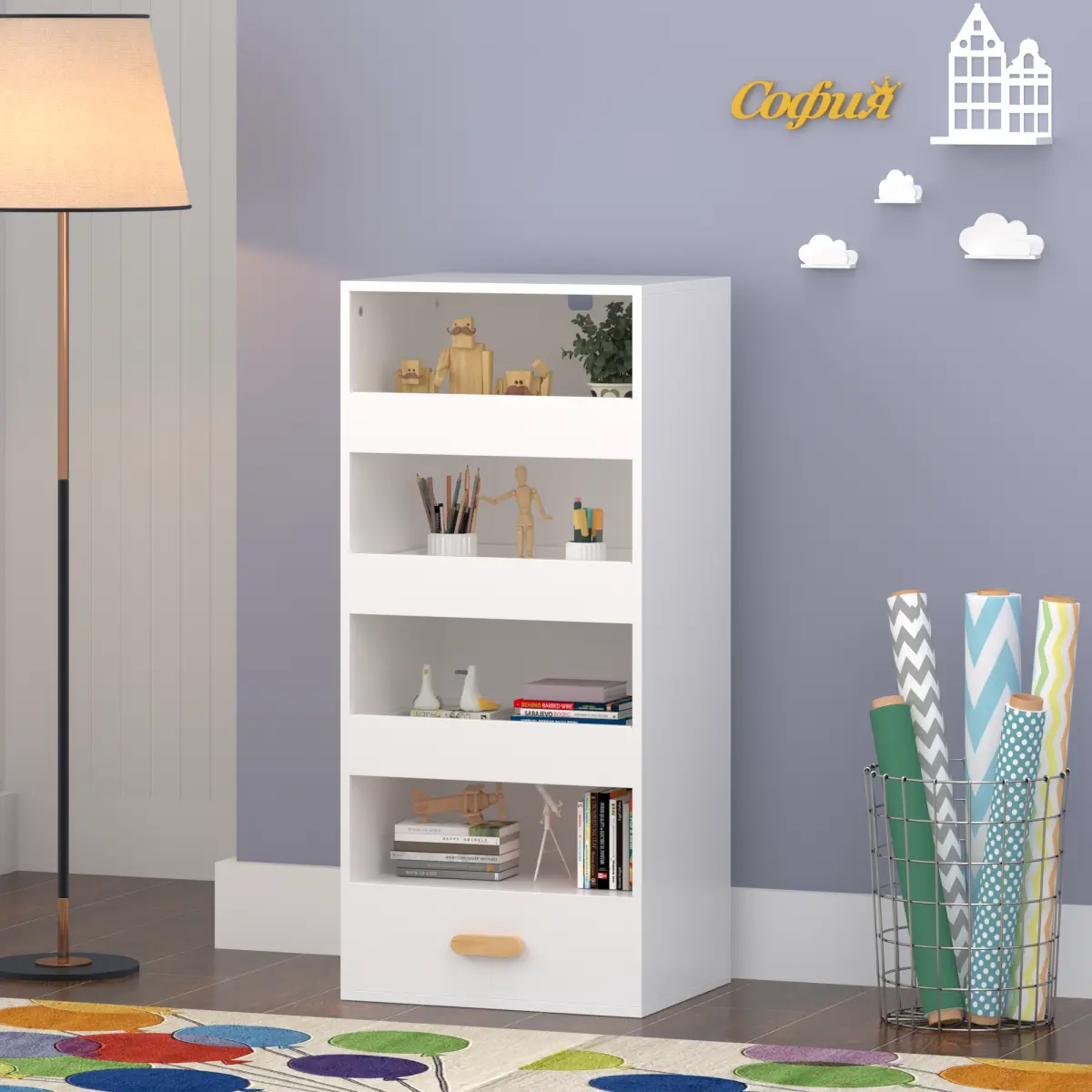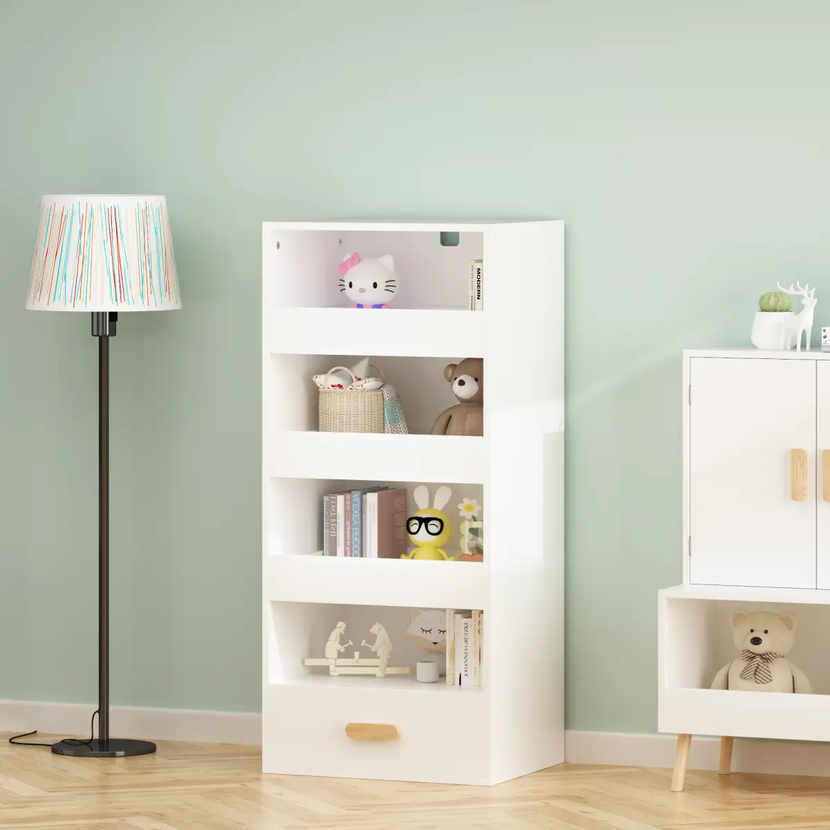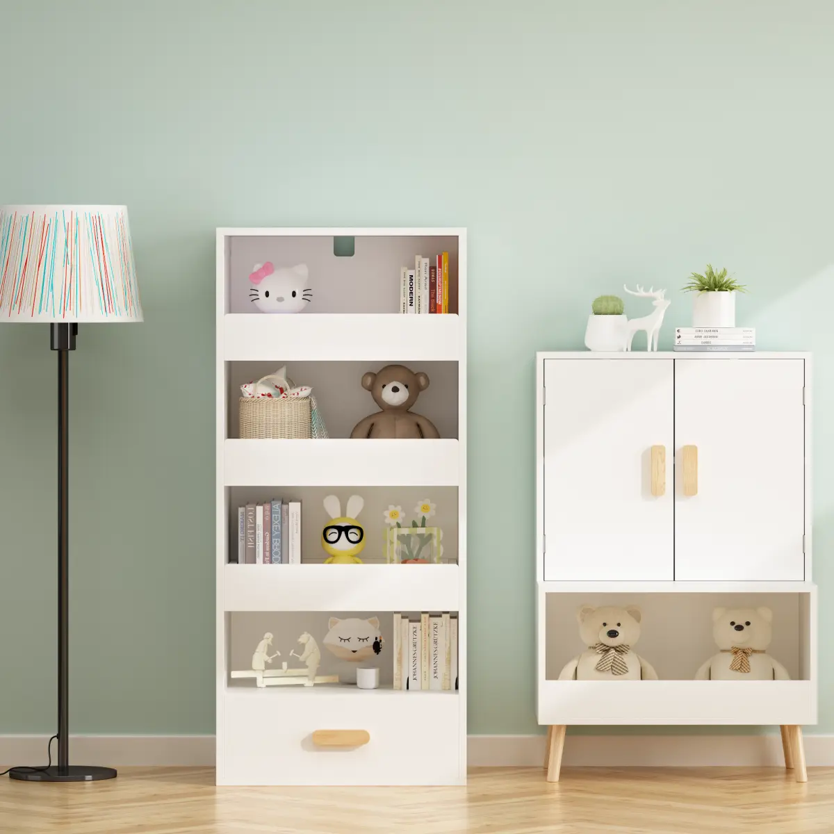 ·Multi-Purpose Use – Ideal as a bookshelf, file organizer, or toy storage cabinet in living room, bedroom, study, or kids’ playroom.