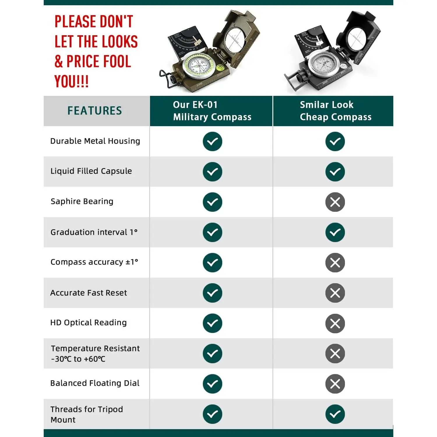 Multifunctional Military Sighting Navigation Compass with Inclinometer | Impact Resistant & Waterproof Compass for Hiking, Camping