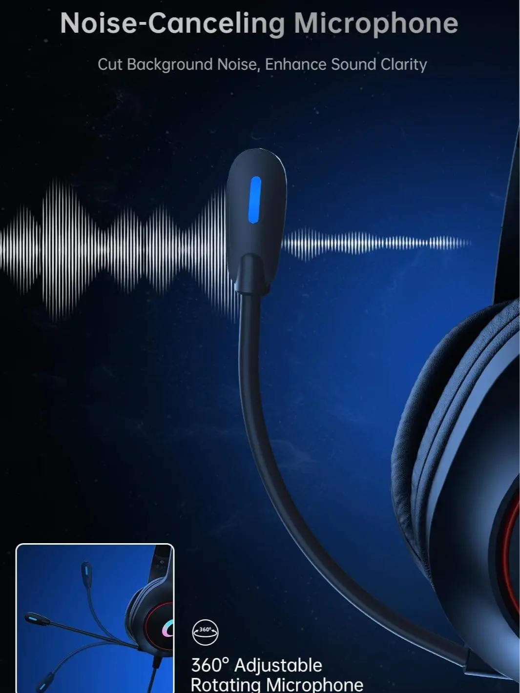 ·ENC Noise Cancelling Microphone: CM7002 black gaming headset for pc feature ENC technology, effectively reducing background noise for clear and uninterrupted communication with teammates during gameplay. By significantly diminishing environmental noise, sound acquisition becomes precise and comprehensive. We've enlarged the microphone head size, resulting in a 50% improvement in sound reception compared to previous versions