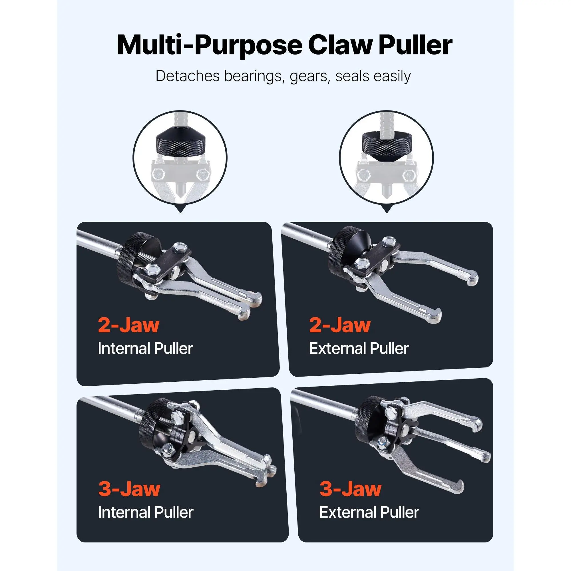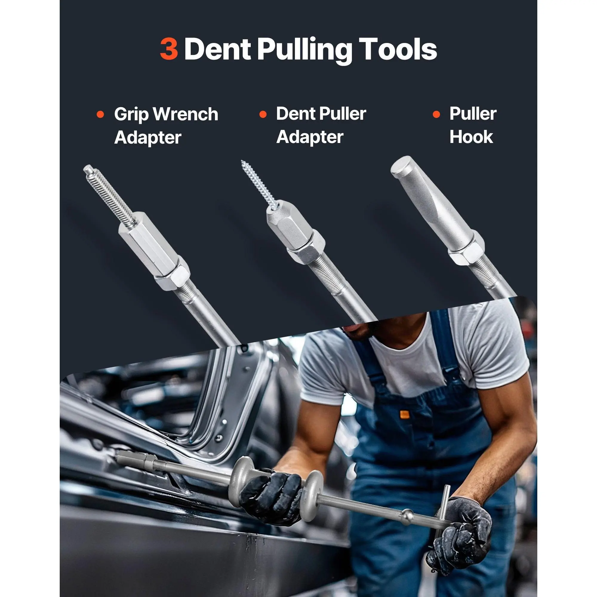 VEVOR 9-Way Slide Hammer Puller Set, 15PCS Front Wheel Hub Bearing Remover Rear Wheel Axle Hub Dent Shaft Puller Tool Kit, Axle Bearing Puller Tool Kit and Slide Hammer Remover Set with Carry BoxComplete Accessory Storage4.3 lbs Slide HammerErgonomic T-BarEasy RemovalJaw Puller DesignDent RepairItem Model Number: XC9027C, Product Weight: 15.9 lbs/7.2 kg