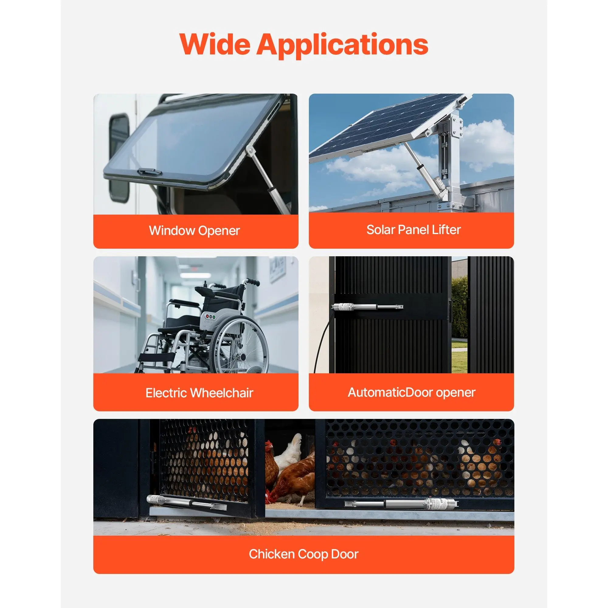 With 225lbs stable torque, 0.6-inch/s high speed, IP54 protection rating, and quiet operation, this 12V linear actuator is ideal for home and more automation applications. Provide an efficient and comfortable user experience, significantly enhancing overall quality of your life.
