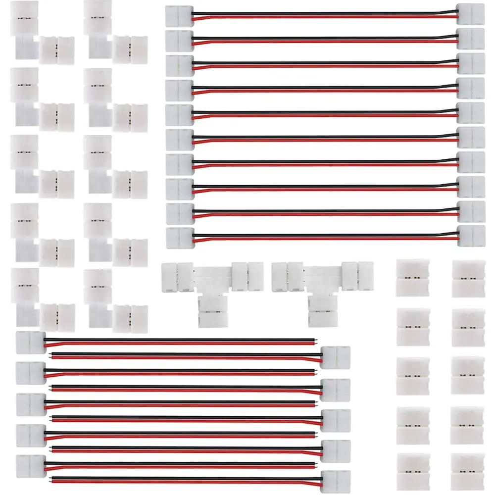 Set of 42 8mm LED Strip Connector Kit Include 2 Pin Right Angle Corner, T Shape and Gapless Connector, Strip Jumper Wires for Flexible SMD2835 (not COB) Tape Lights