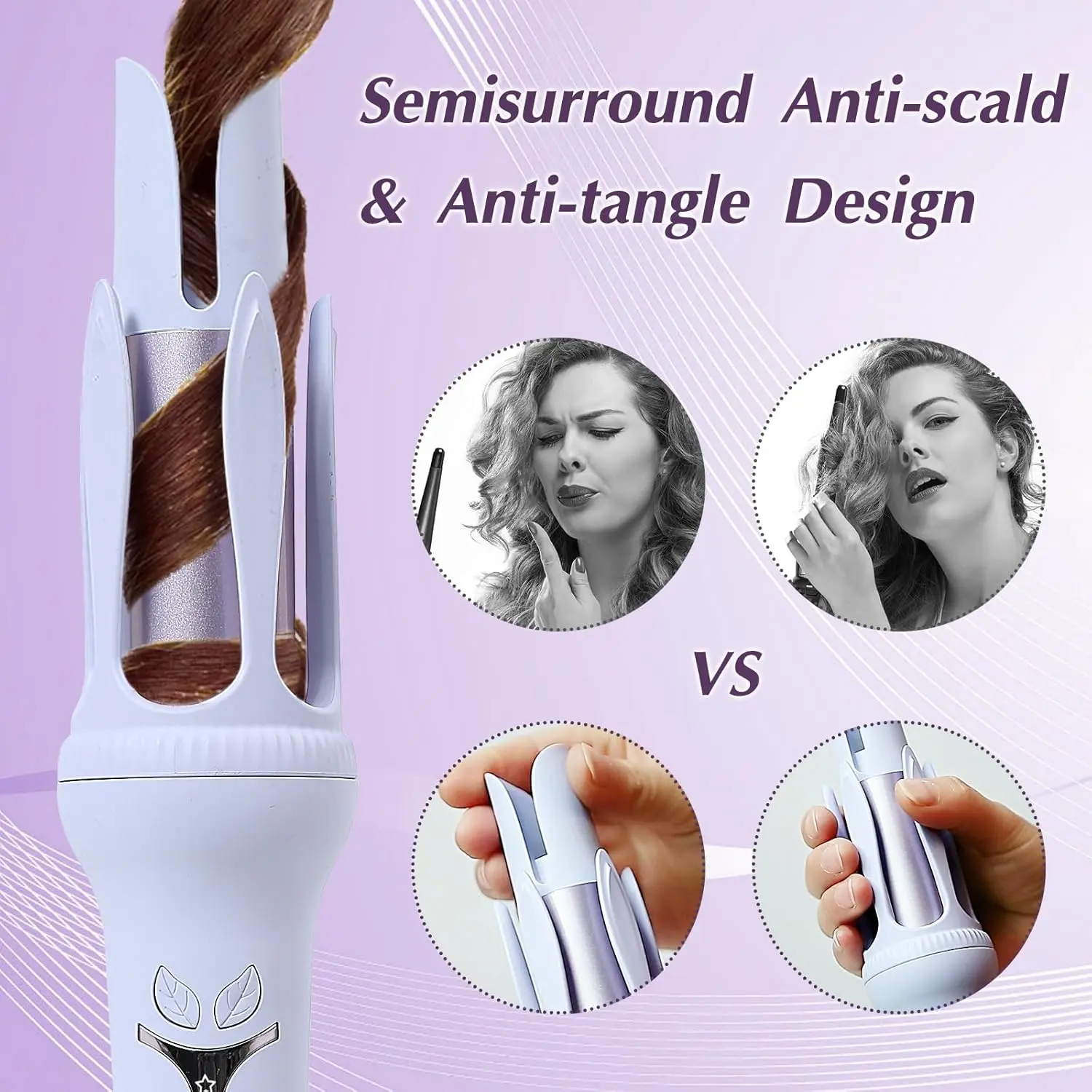Compare to the traditional hair curling iron,the anti-burn design of the new upgraded automatic curling iron keeps you skin away from the heating area, only you hair touch the high temperature.That's why you don't need to worry your face be burned by the hot barrel. And you can hold the long cool tip when styling your hair, protecting your fingers from burning.