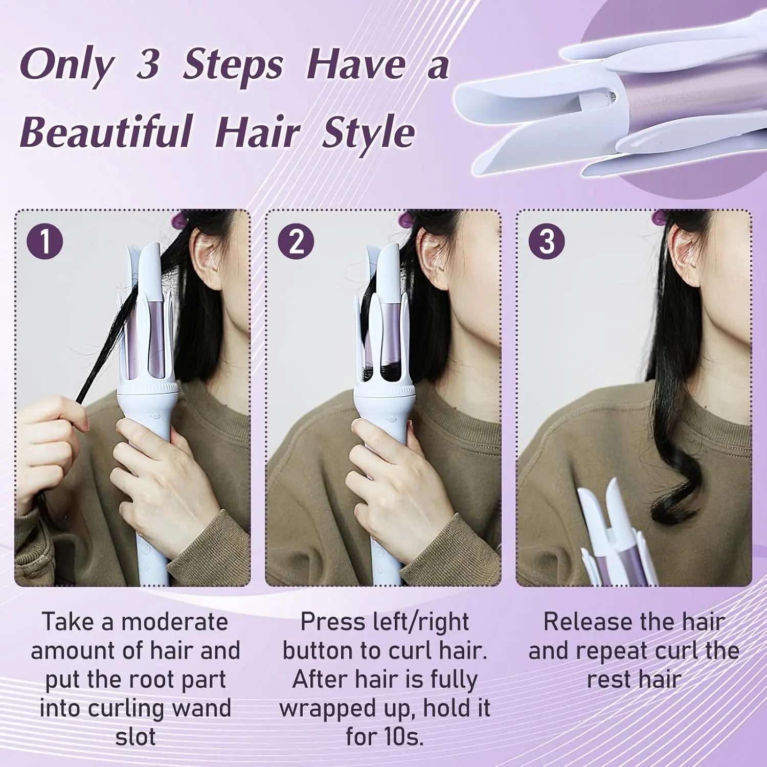 At Lasting Whatever hairstyles you curl, rotating Curling Iron locks your curls in place to lasting all day(If you are not wash your hair after styling,