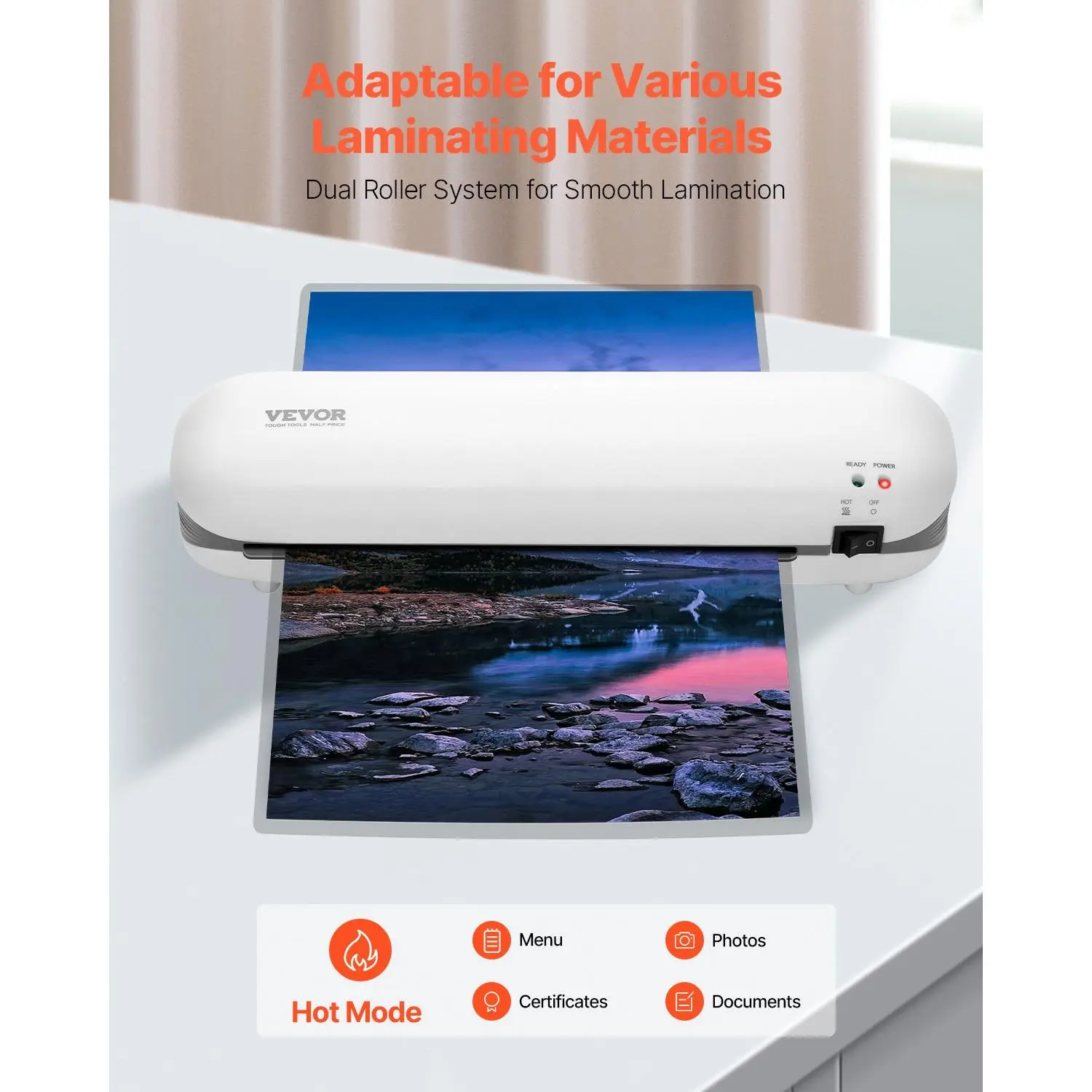 The laminator handles sizes up to A4 and is ideal for A4/A5/A6 photos, letters, certificates, business cards, menus, postcards, and more. Ideal for DIY projects, it's great for home, office, school, and restaurant use.