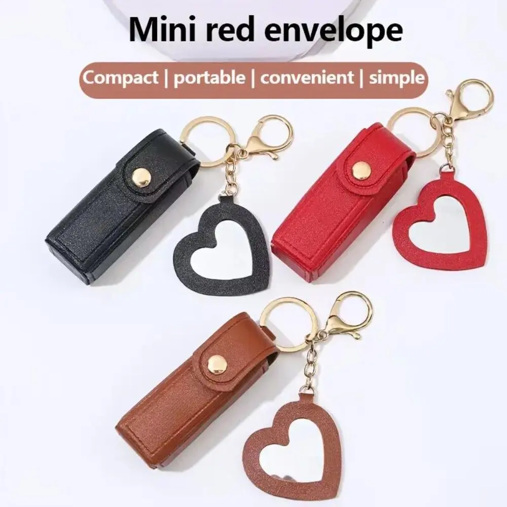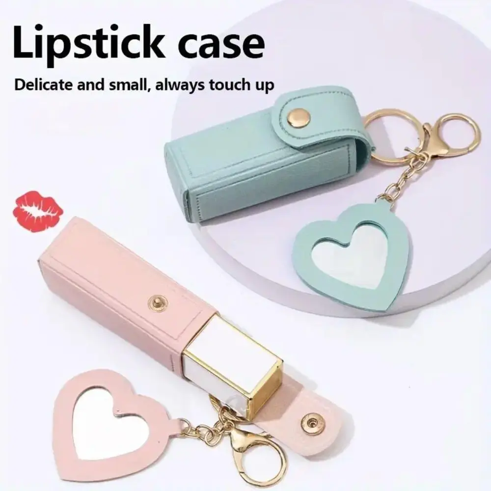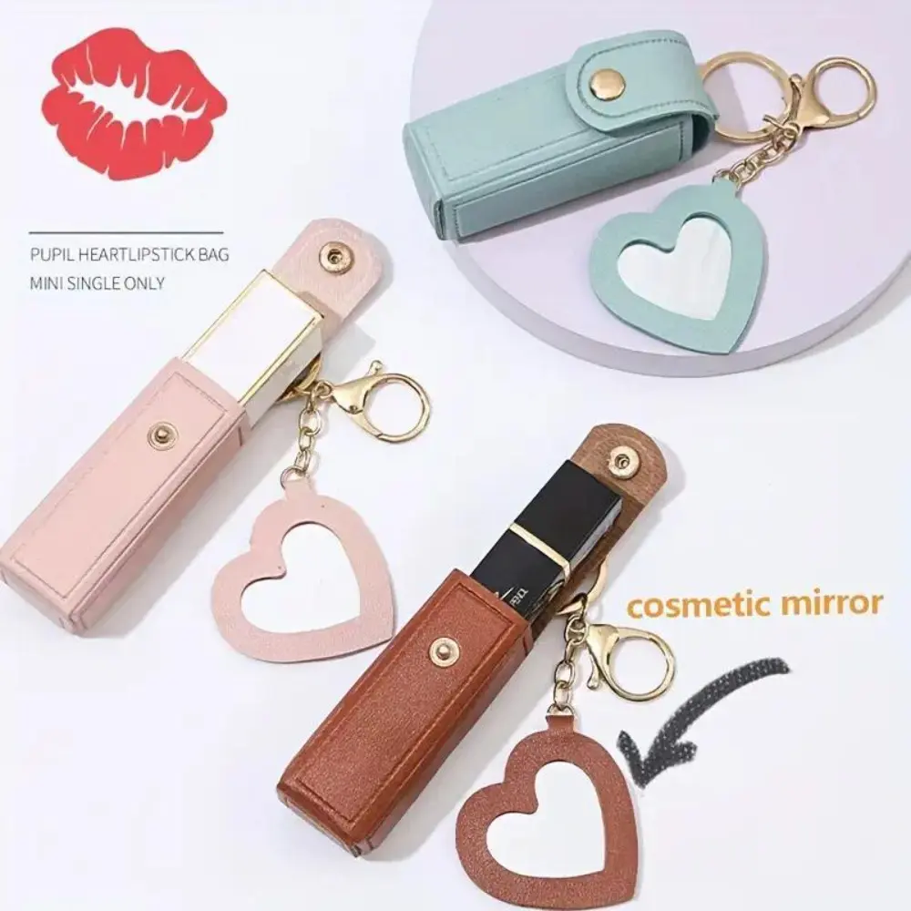 【Heart-Shaped Mirror】This portable lipstick pouch comes with a lovely heart-shaped mirror, bringing a delicate and unique touch to your quick on-the-go makeup touch-ups.