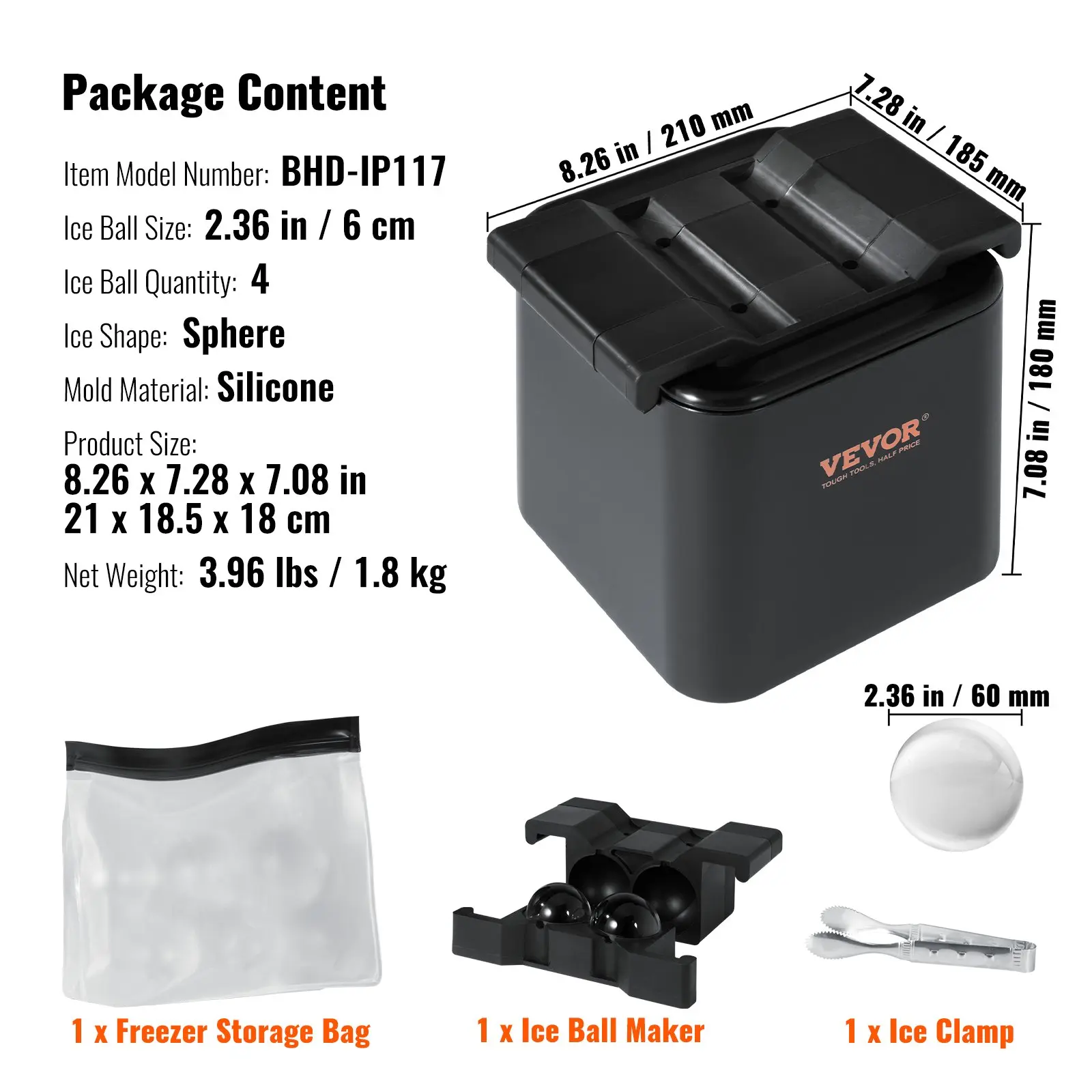 This ice ball maker will deliver 4 crystal-clear slow-melting 2.36in/6cm diameter ice balls using a standard home freezer and any water source. Pair it with your favorite drinks for an elevated -chilled but never watered-down- experience. Widely used by bars restaurants and bartenders.