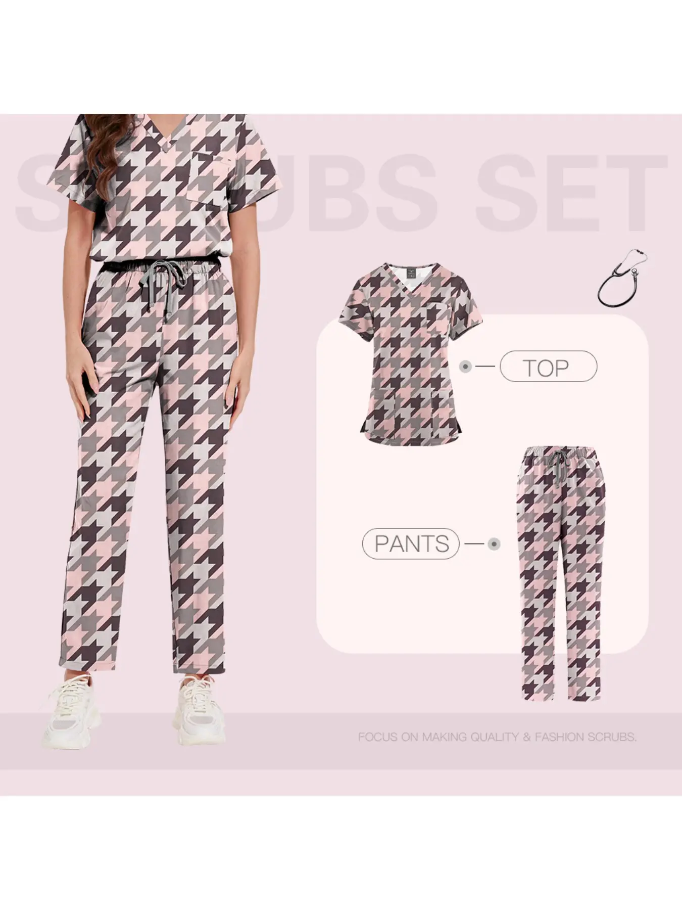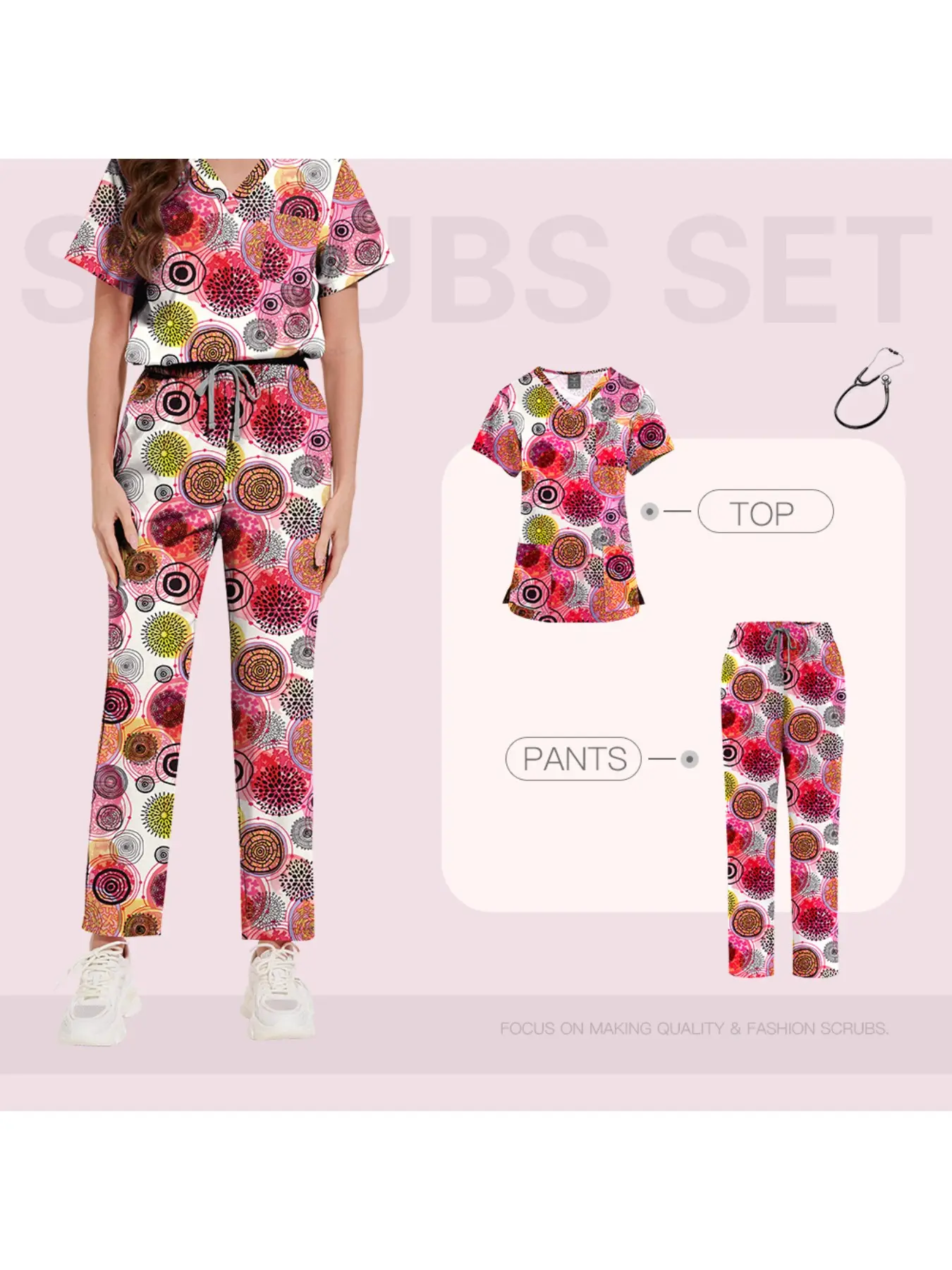 Women's Two-Piece Anesthesia Scrub Set, High-Stretch Workwear for OR Technicians & Nursing Staff