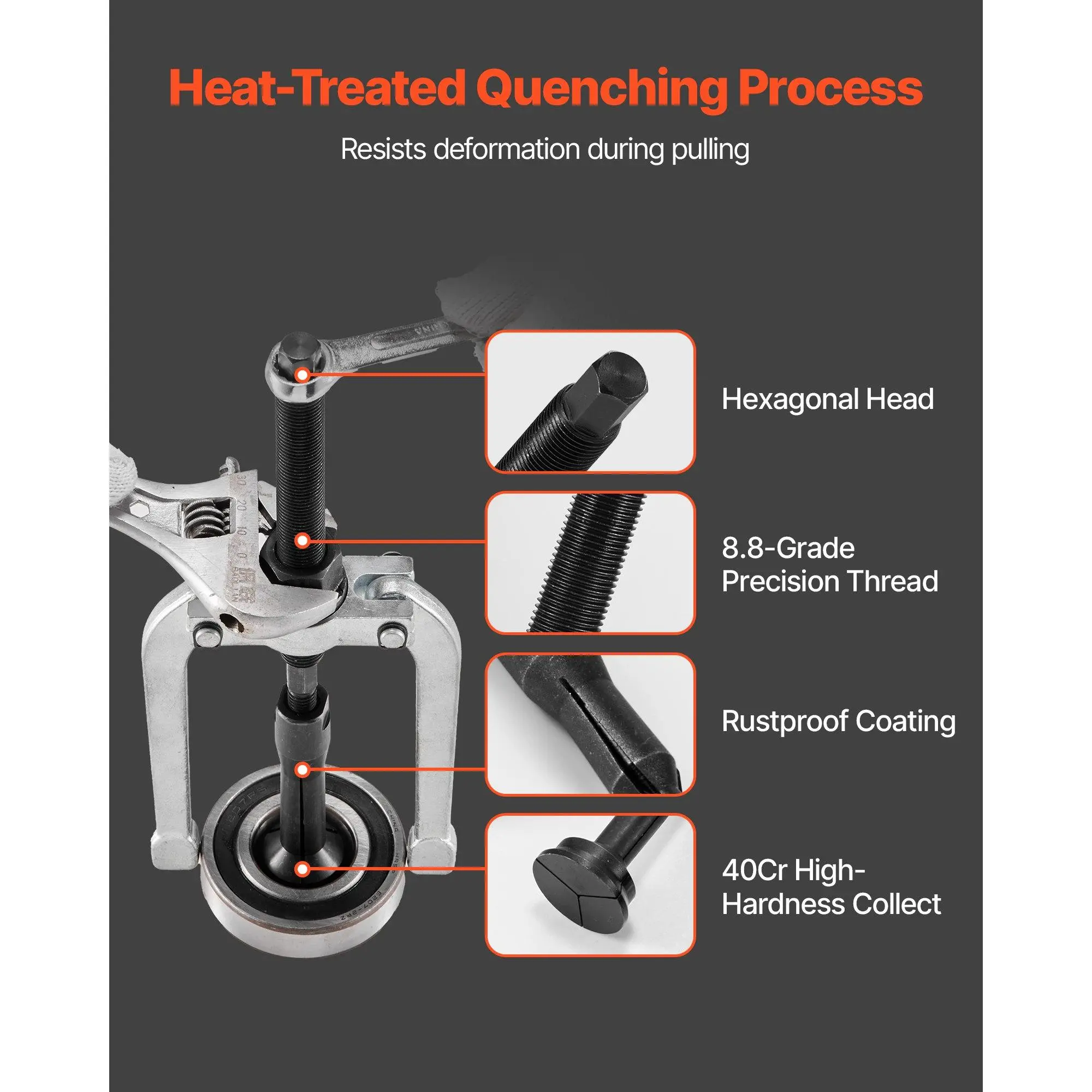Crafted from high-temperature quenching Cr40 material, our collection maximizes hardness. The slide hammer kit, made of high-hardness steel, resists wear, deformation, and fracture during use.