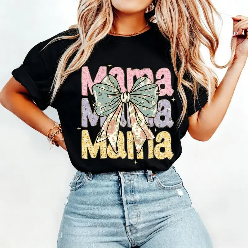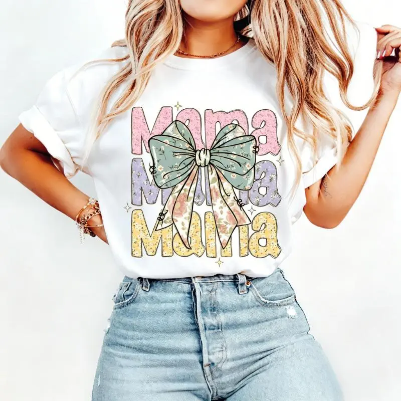 5. Floral Mama Coquette T-shirt, Boho Mama T-shirt, Mothers Day T-shirt, Mama Varsity T-shirt, Spring Floral T-shirt, Gift for Mom, Pink Mama T-shirt, Gift For Mom