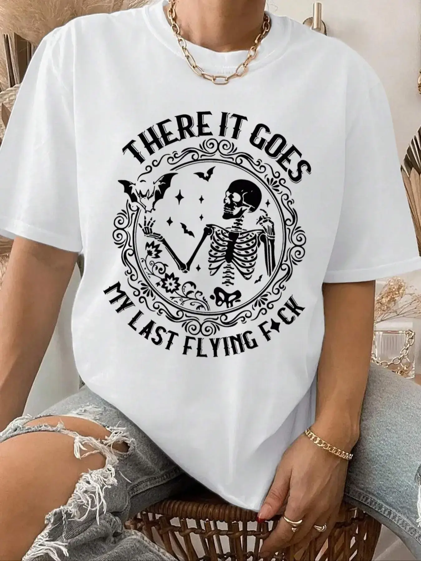 ·Slogan Print Tee: This round neck tee features a bold "There It Goes, My Last Flying F*ck" slogan. Perfect for making a statement.