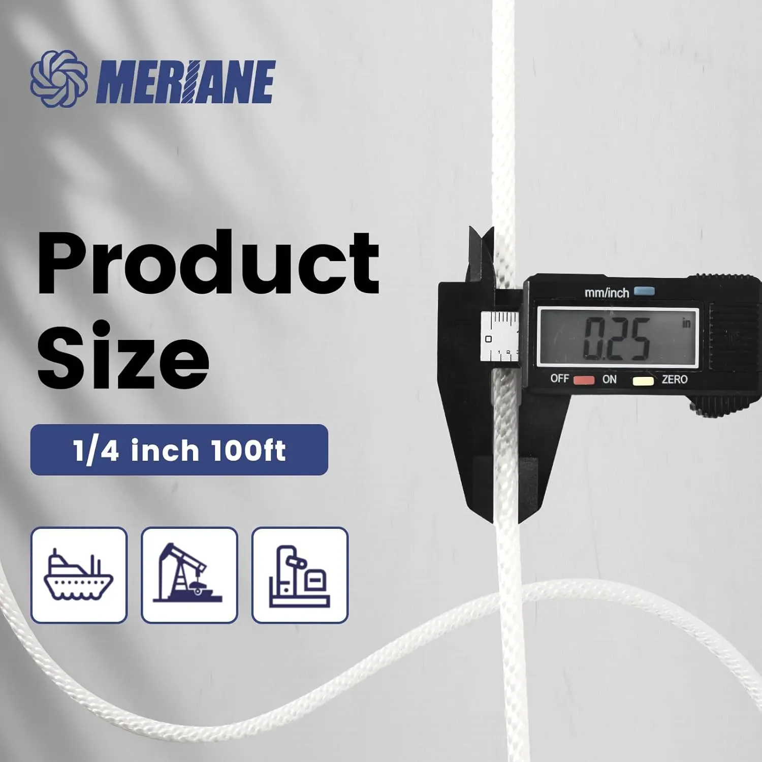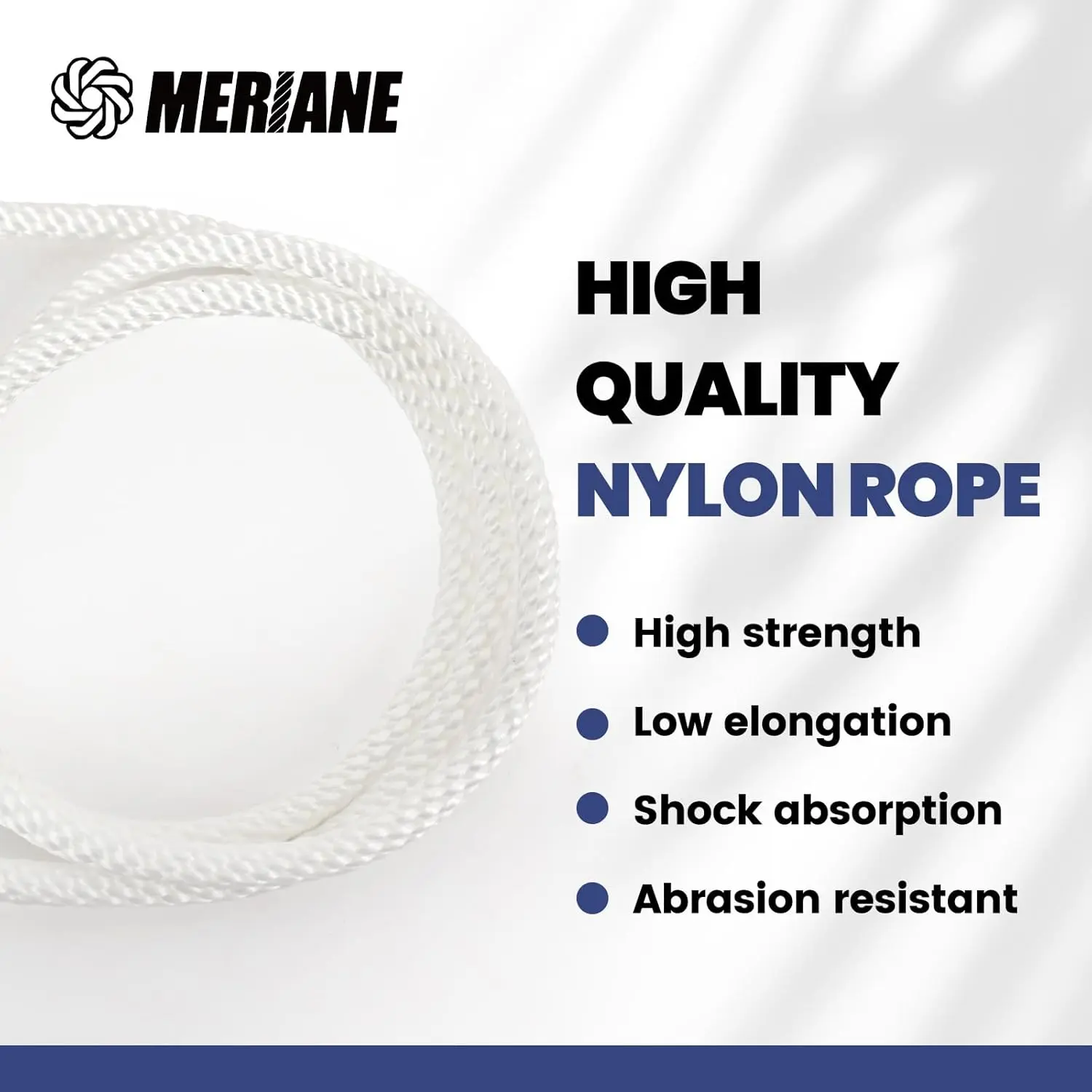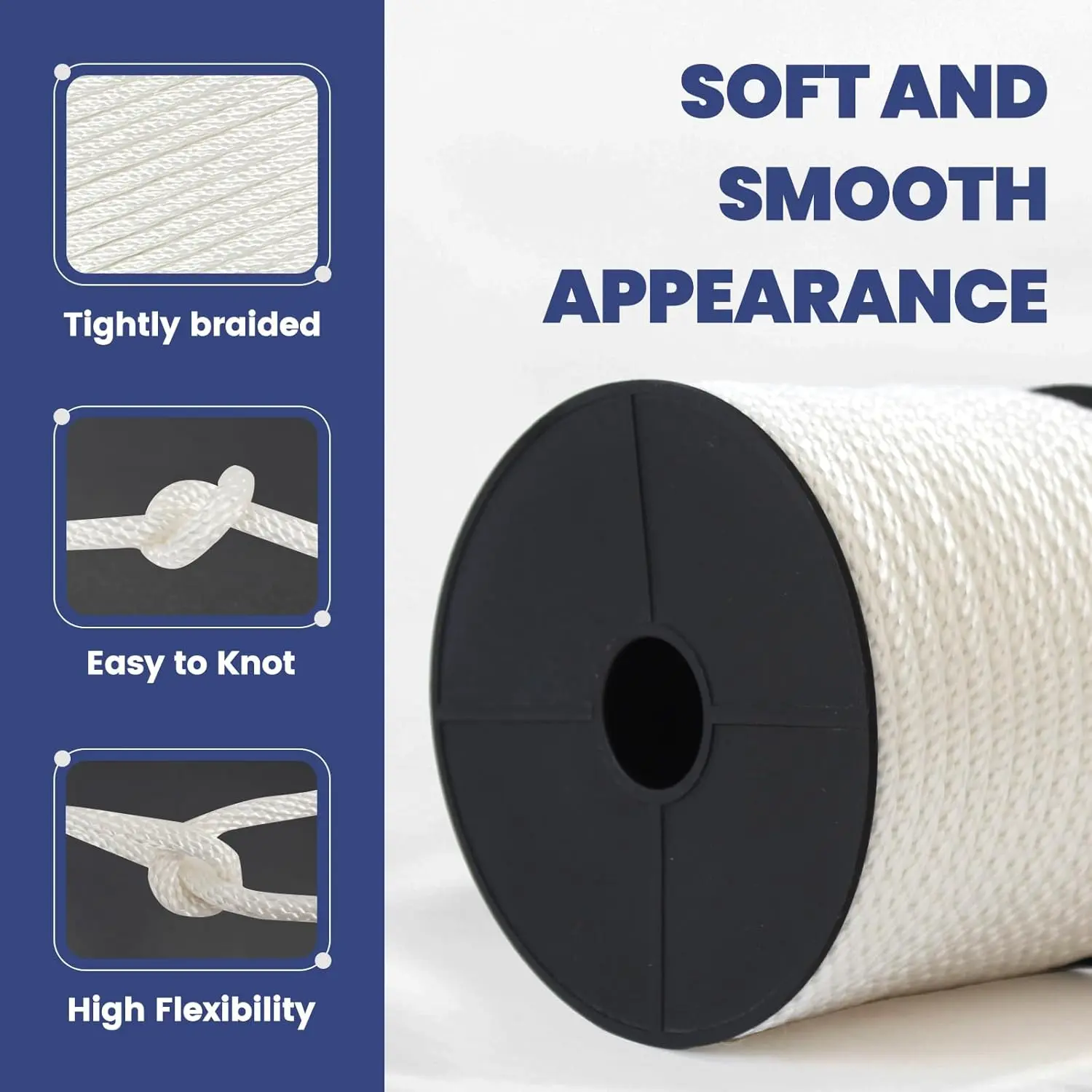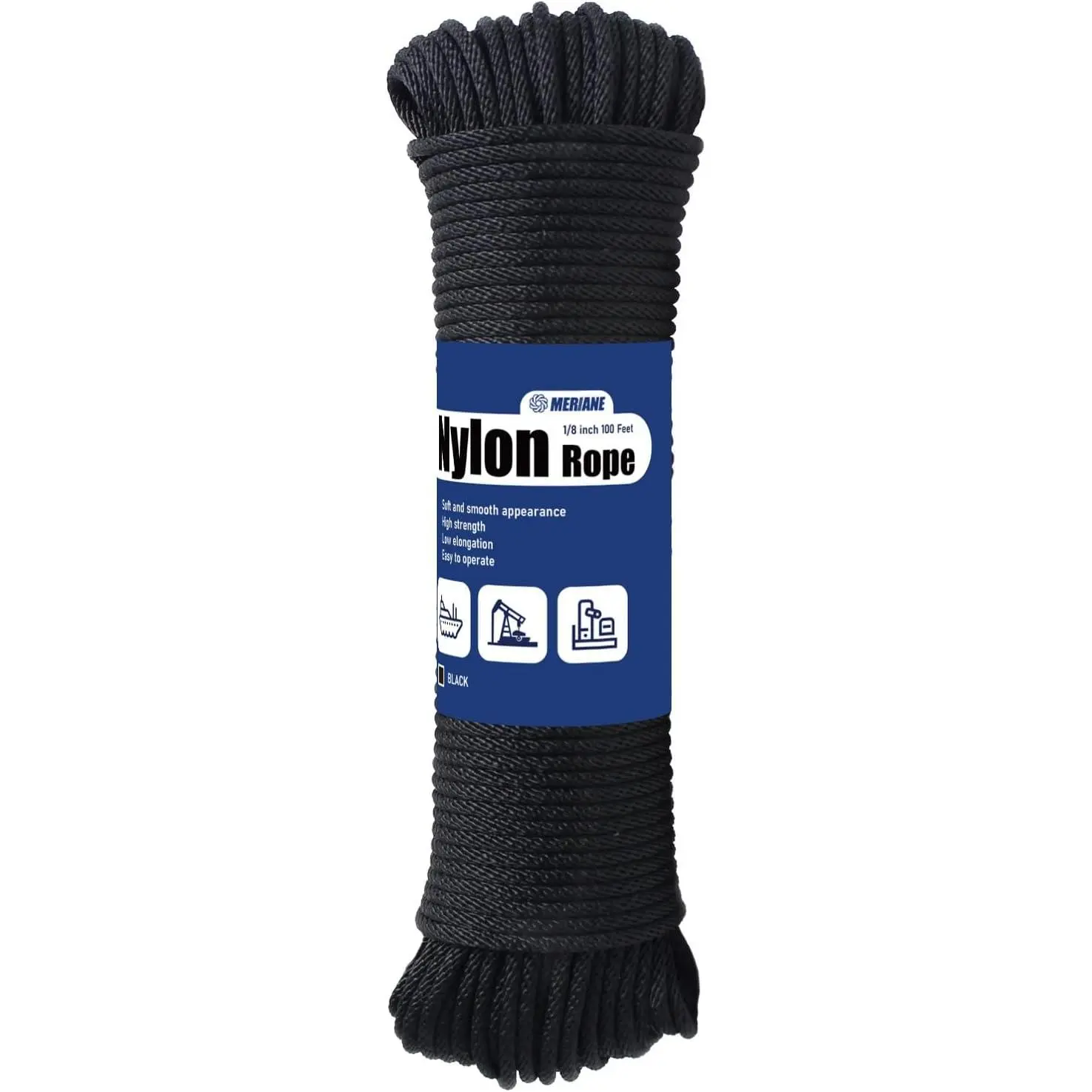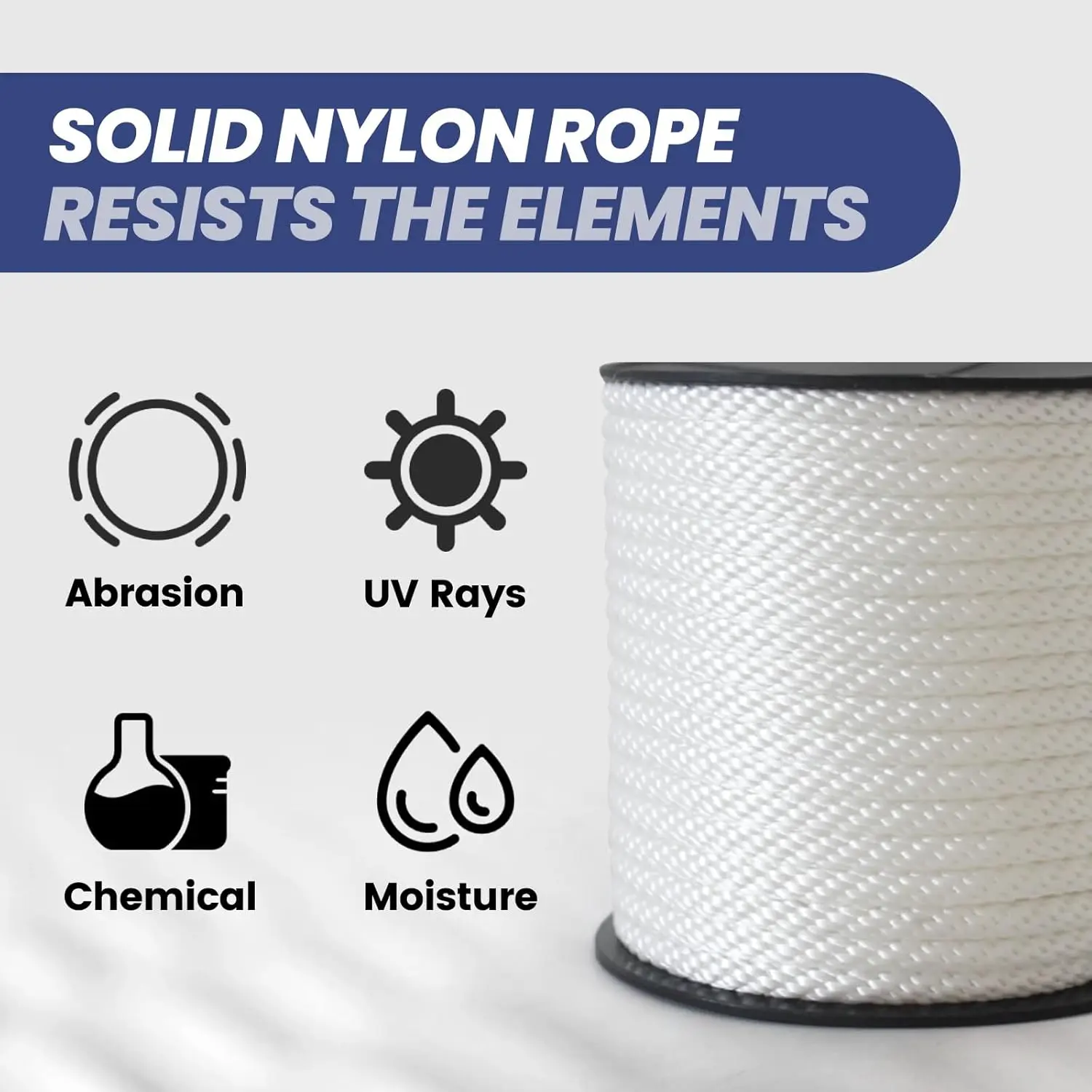 Nylon Rope 100 Ft 1/4 Inch – Multipurpose Solid Braided Rope – Abrasion & UV Resistant – Ideal for Camping, Clothesline, Marine, Flag Line - Shock Absorption for Indoor Outdoor
