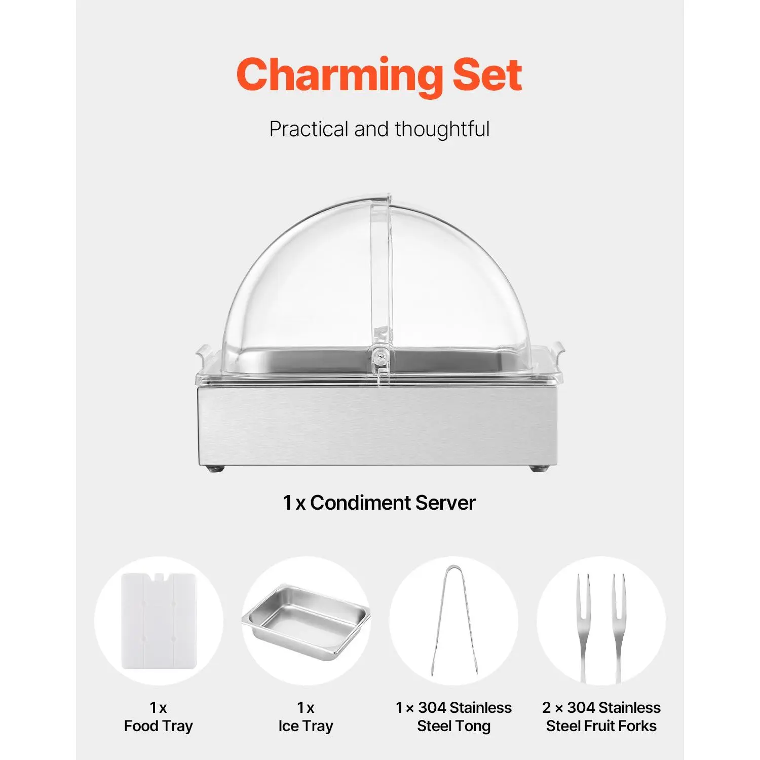 Made from food-grade stainless steel, the food tray of our ice cooled food display rack is long-lasting and easy to clean. Besides, its built to withstand impacts and features a transparent lid for clear visibility of the food, ensuring secure and attractive storage.