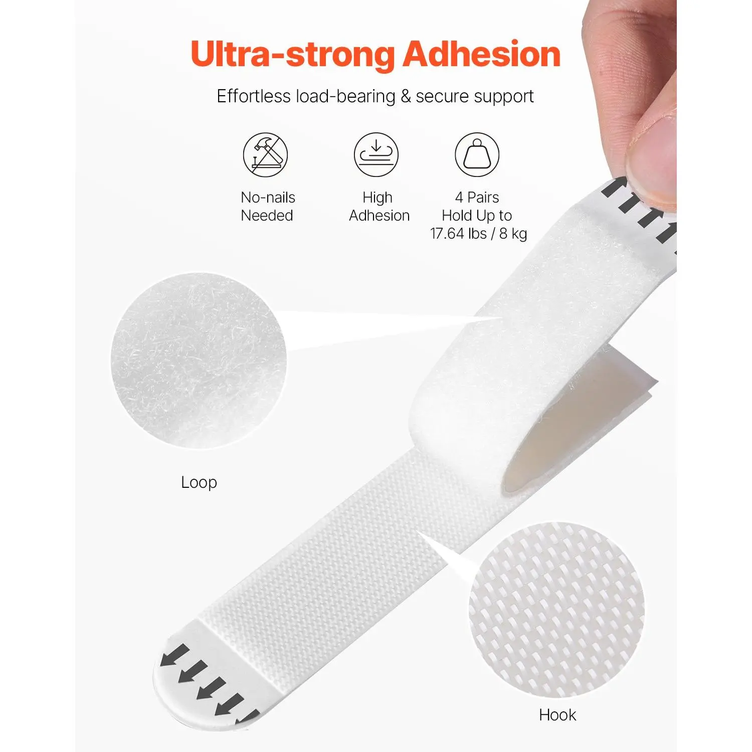 Four pairs of strips can easily support up to 17.64 lbs/ 8 kg, making the frame hanging strips ideal for hanging heavier items or large decorations without worry.