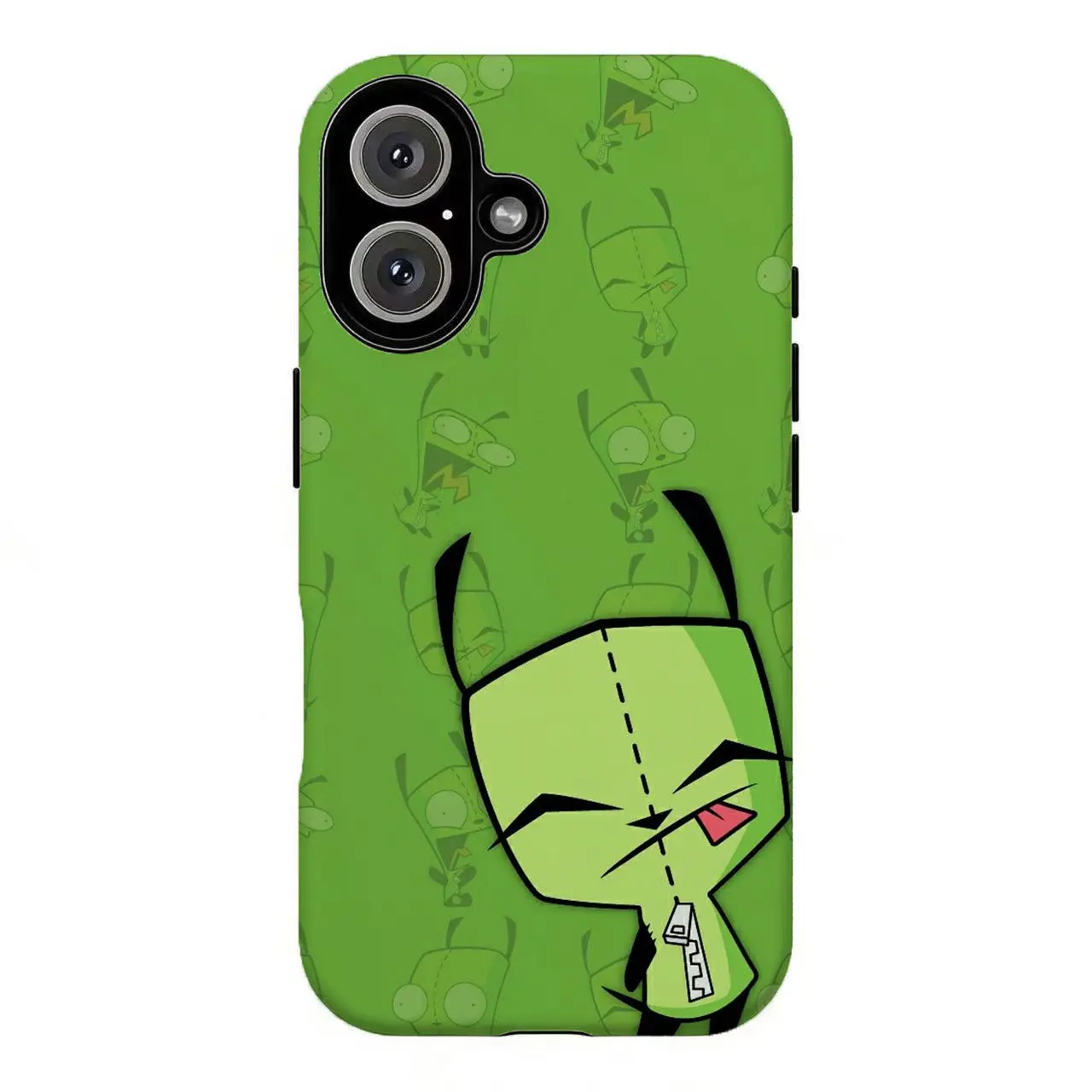 FL-Invad3r Zim GIR Skulls & Stars Phone Case,Green Alien Cartoon Y2K Punk Cover For iPhone 11 12 13 14 15 16 17 Air Pro Max for Samsung S26 S25 S24 S23 S22 S21 Case,Gift for her/him/fans