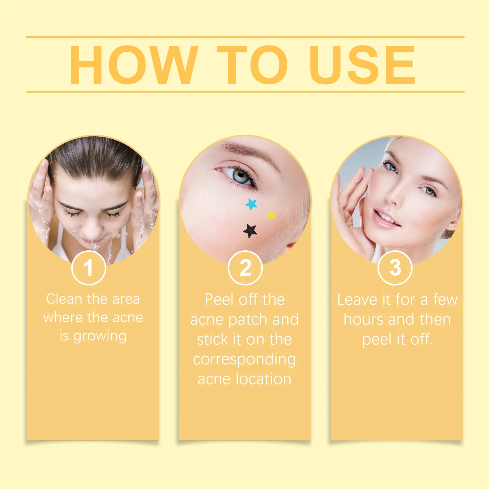 Our bleached acne contains glycerin and hydroxyethyl cellulose. It absorbs excess oil, keeps skin fresh and prevents new breakouts. When applied properly, it can hide acne, cover local blemishes, and enhance the overall beauty of the skin. The way to use it is simple: clean the area where the pimple is growing, remove the pimple patch and apply it to the appropriate area, leave it for a few hours, and then peel it off. And can naturally fit the skin color, not easy to attract attention, suitable for daytime use.
