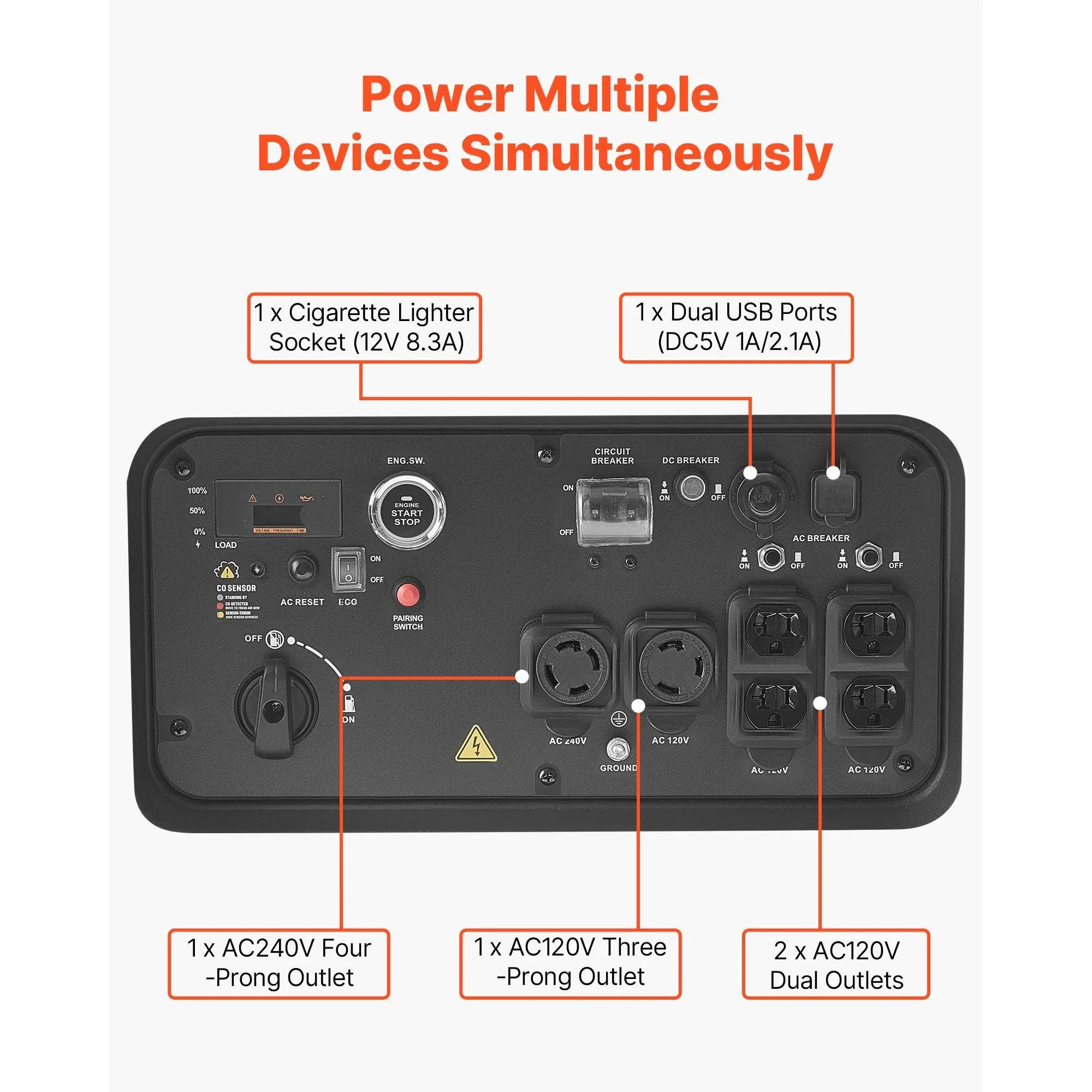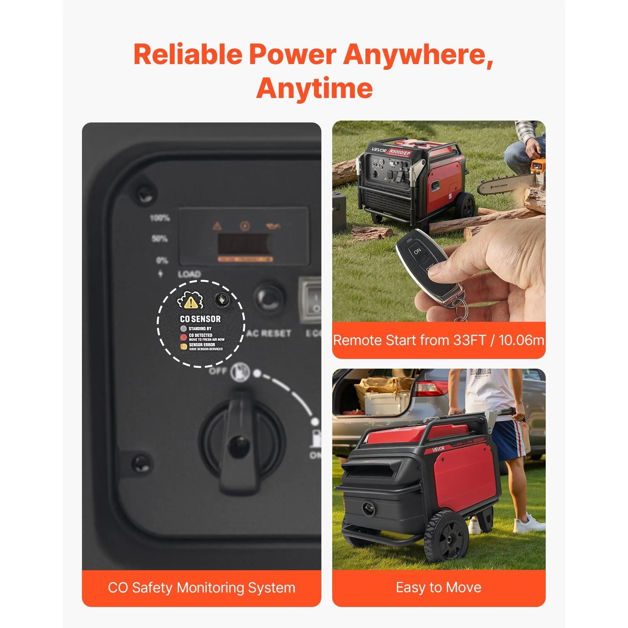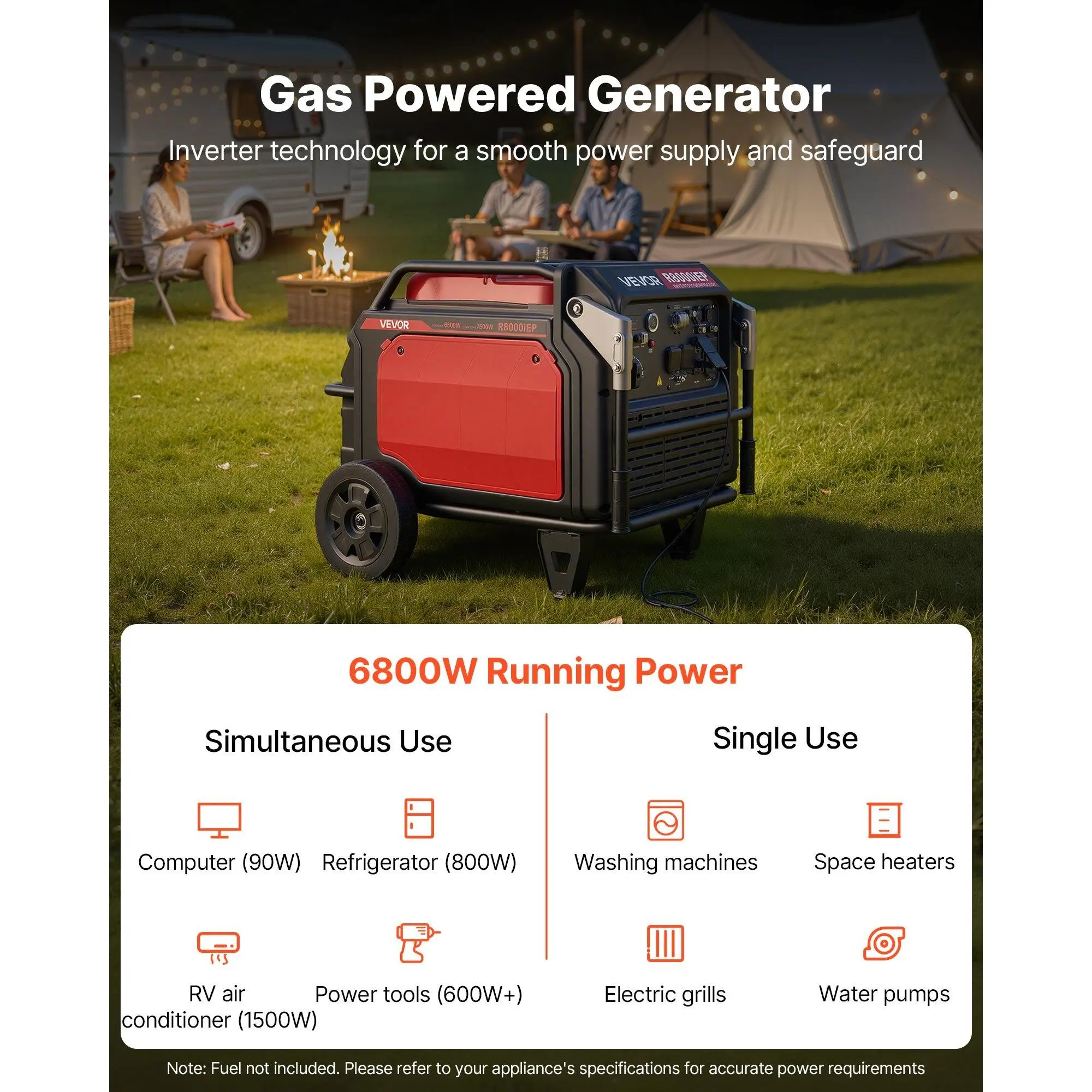 VEVOR gas-powered inverter generator delivers powerful, steady electricity while keeping noise and vibrations low. Lightweight and portable, it's ideal for outdoor adventures, home backup, small business tasks, or renovation projects, making power supply convenient and hassle-free anytime, anywhere.