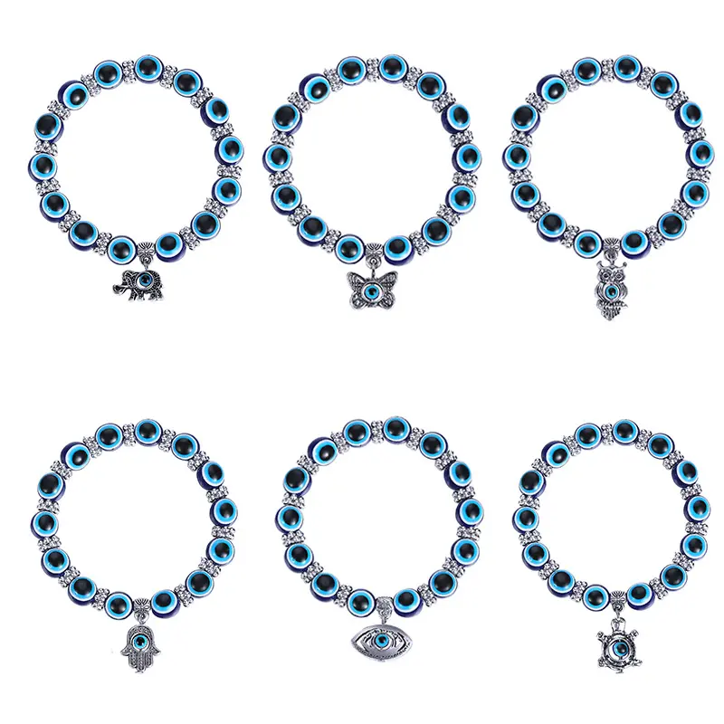 Evil Eye Bracelet Butterfly Elephant Fatima Hand Pendant Resin Beads Blue Eye Bracelet