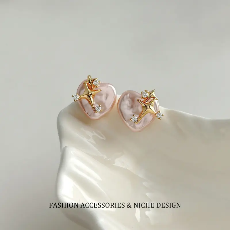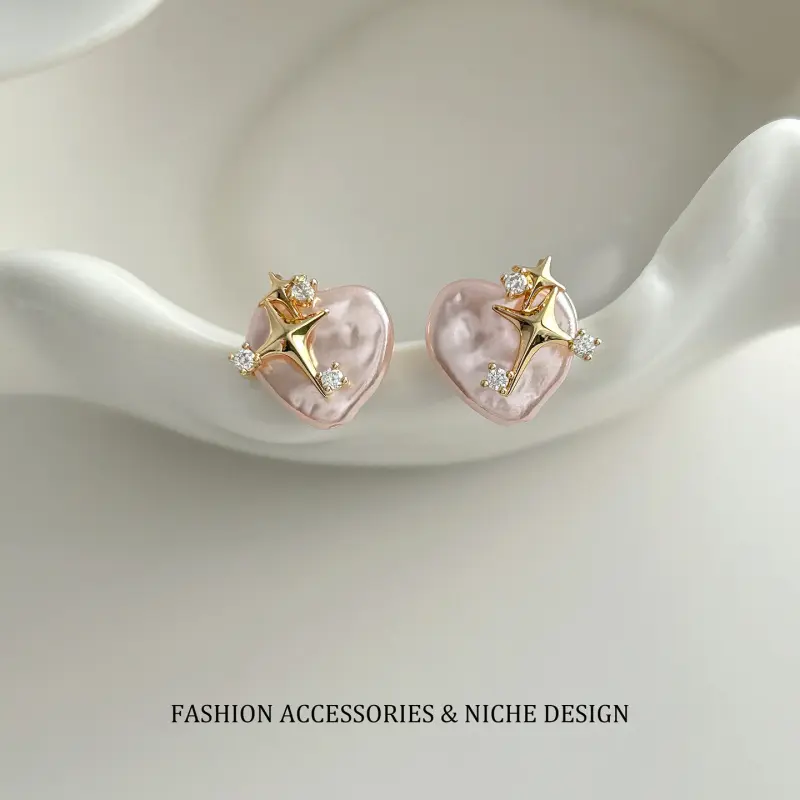 Unique and sophisticated starburst heart pearl earrings for women, simple, stylish, elegant, versatile for commuting, perfect as a gift