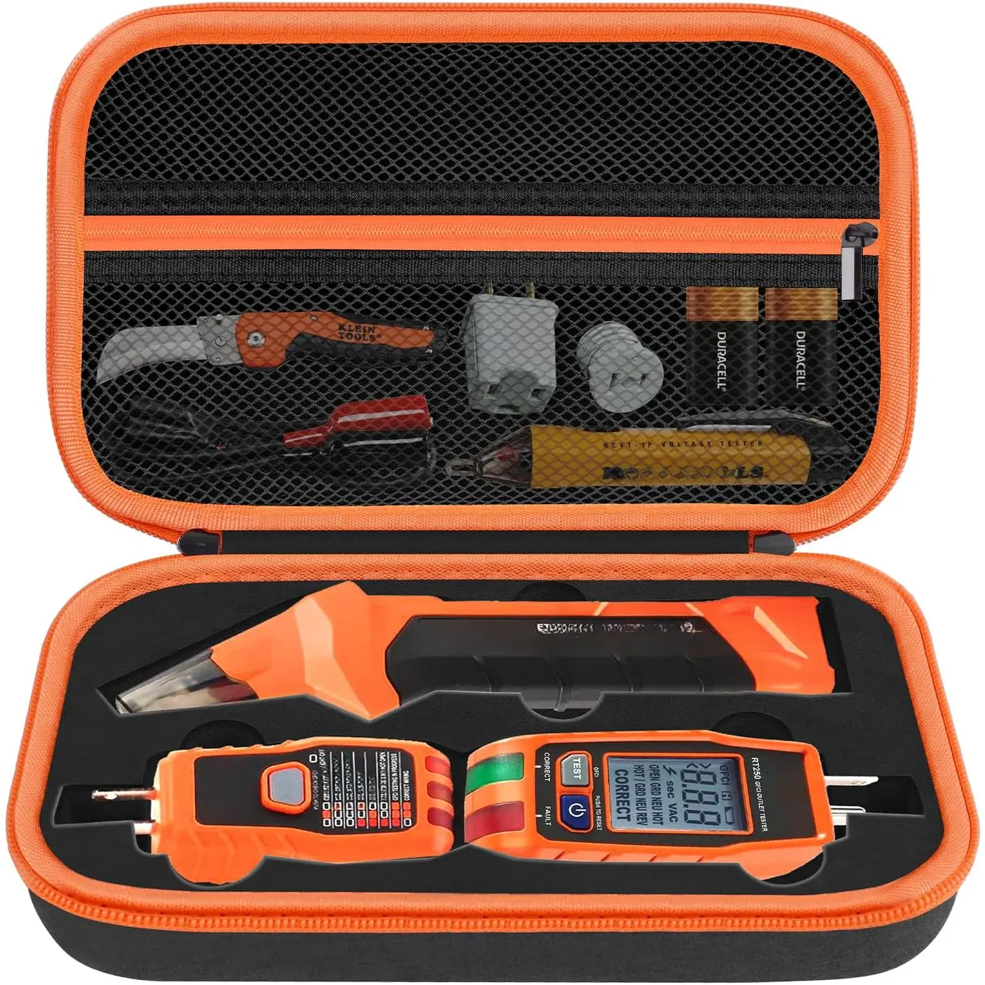 【1:1 Precise Slot】The receptacle tester storage holder features a precise slot designed specifically to secure a Klein voltage tester. This ensures that your Klein multimeter kit remains securely in place, preventing it from falling out when you open your electrical tools box. Additionally, this holder acts as a protective case for Klein circuit tracers, safeguarding the tool from potential damage caused by shaking within a rigid electric tools case.