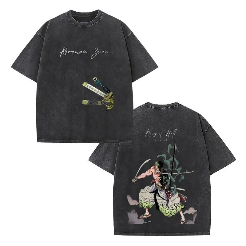 One Piece Anime Derivatives Printed Washed T Shirt Unisex Summer Fashion Trend Tee Casual Streetwear Harajuku Style Comfortable Cotton Top for Men and Women