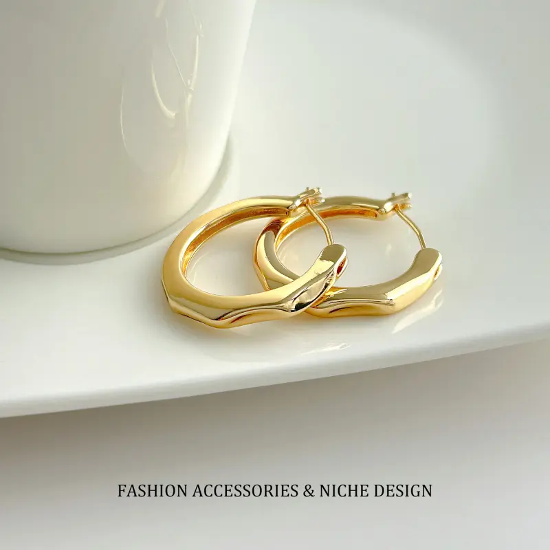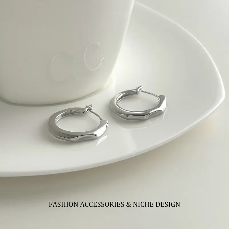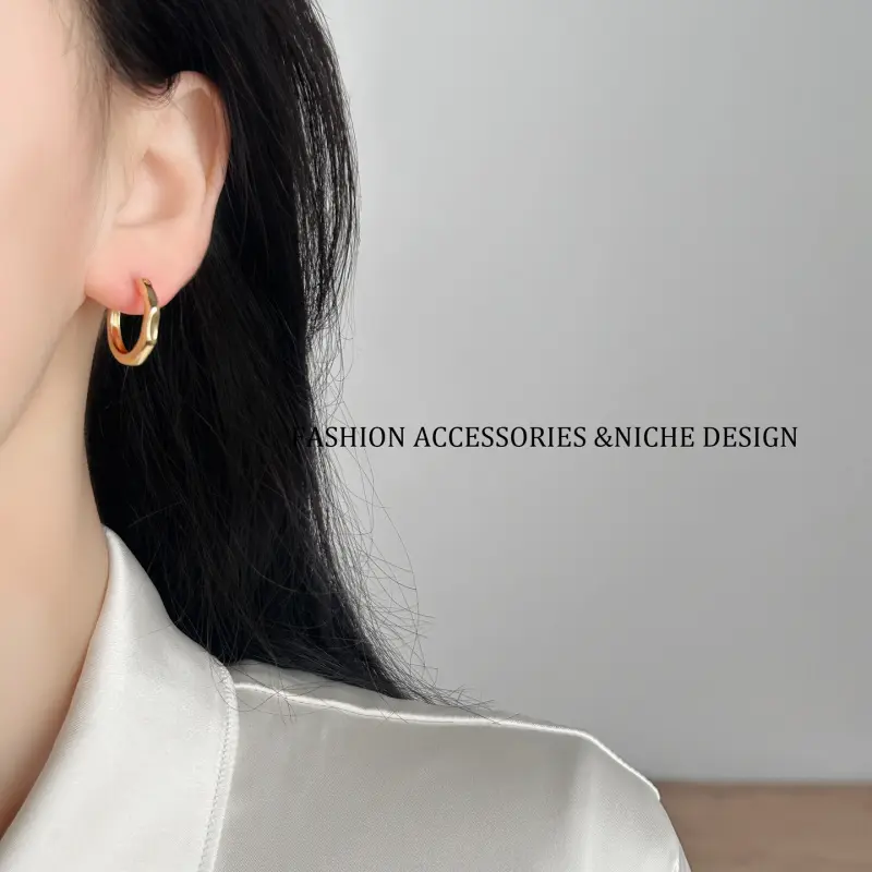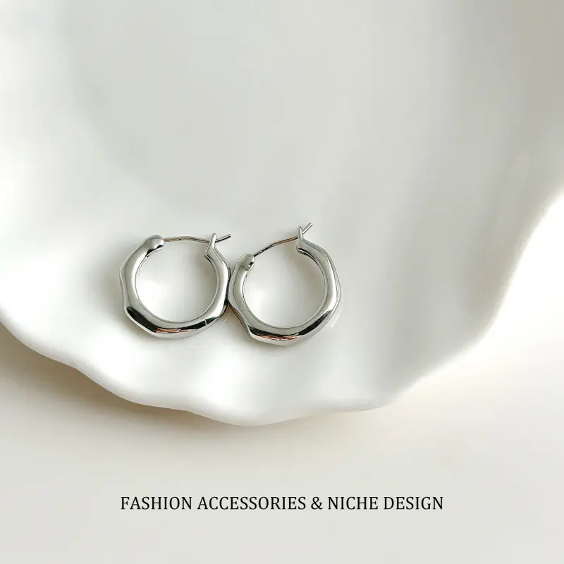 Gongliu Earrings: Niche French-style women's silver plain hoop earrings, stud earrings, designer earrings, gift