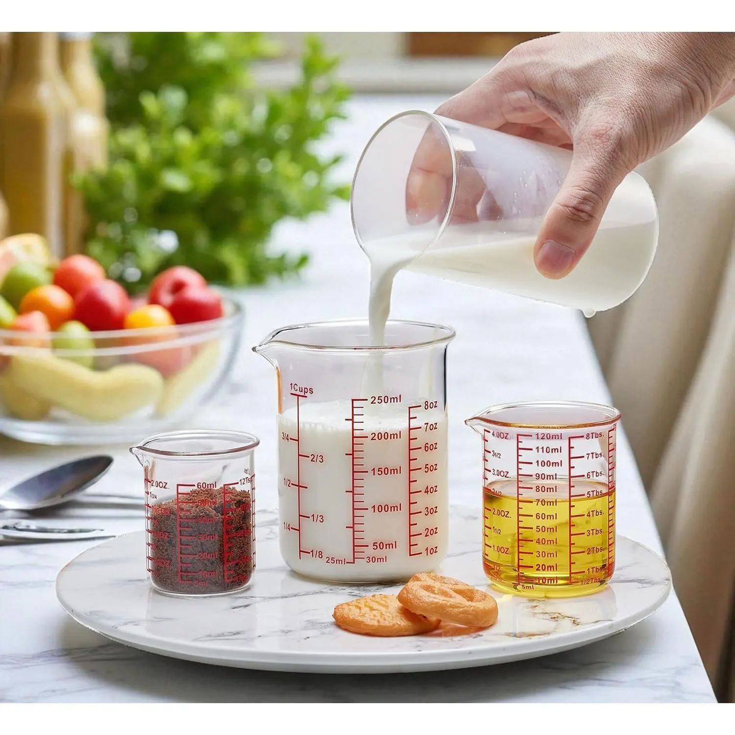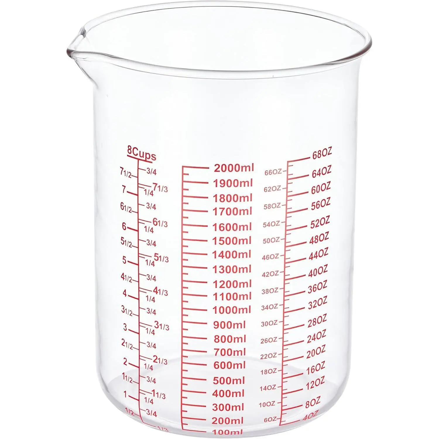 ·Clear Multi-Scale Markings – Features legible measurements in ounces, cups, and milliliters for accurate portioning. High-temperature resistant labels ensure markings stay sharp and won’t fade, making it a reliable choice for both kitchen and laboratory tasks