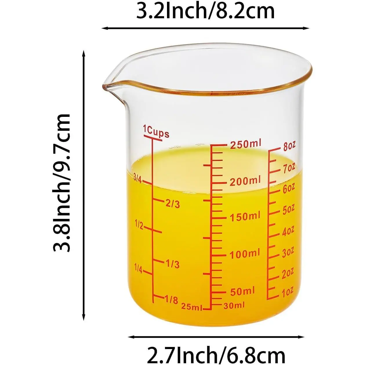 ·Essential Kitchen & Bar Tool – This 1 cup glass measuring cup (8oz/250ml) with V-shaped spout is perfect for precise liquid measuring in cooking, baking, or cocktail mixing. Lightweight yet durable, it’s ideal for daily kitchen and bar use