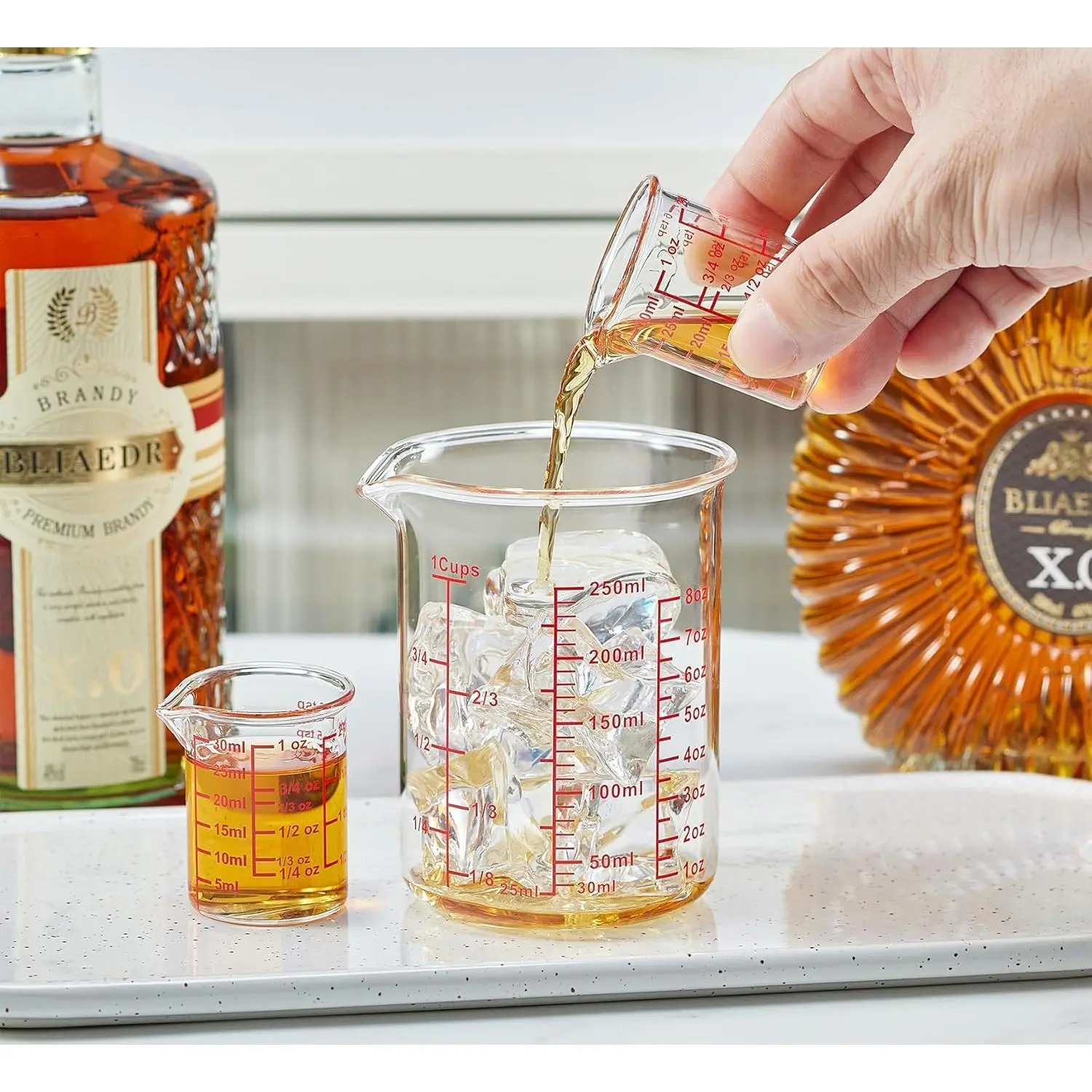 ·Precise Pouring Design – The V-spout allows smooth, drip-free pouring, making it the perfect bar measuring cup or cocktail measuring cup. Compact size balances generous capacity with easy storage and space efficiency