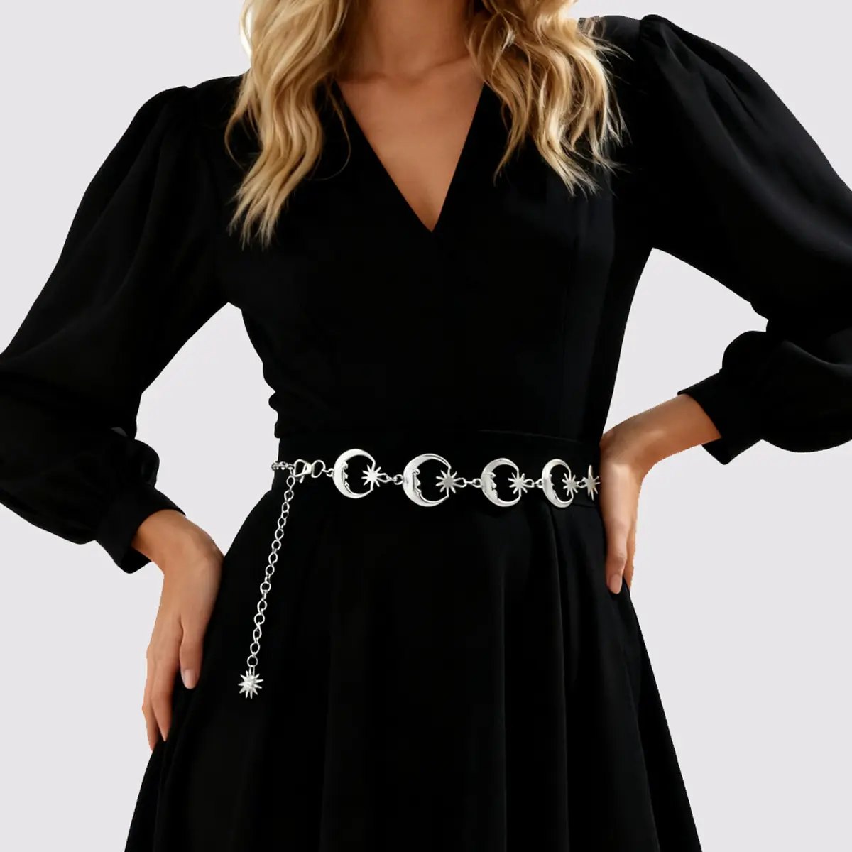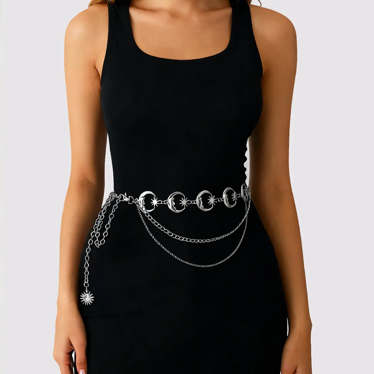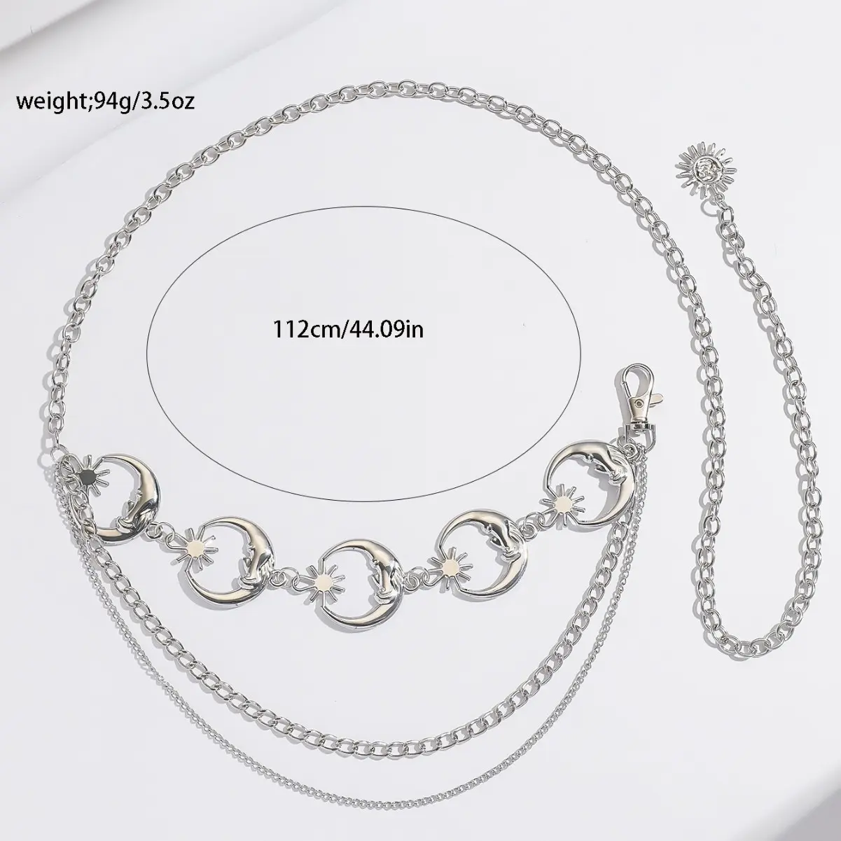 Features a connected design of retro moon and star elements, integrating gothic, Y2K and hip-hop styles.The personalized and eye-catching shape creates a cool girl vibe, perfectly matching sweet-cool, retro, dark and other dressing styles.