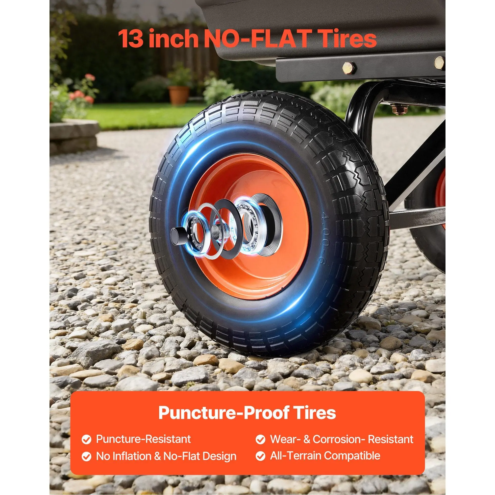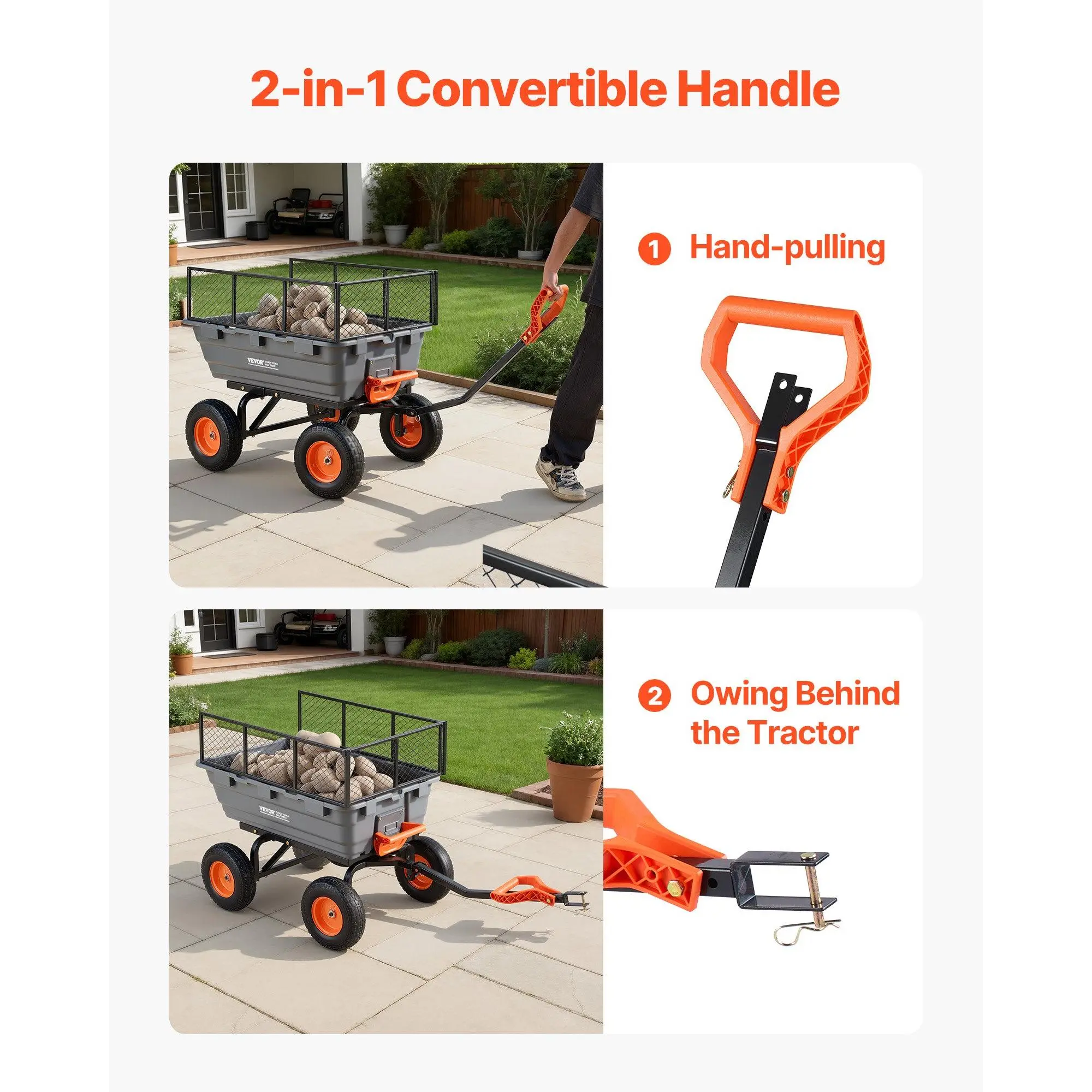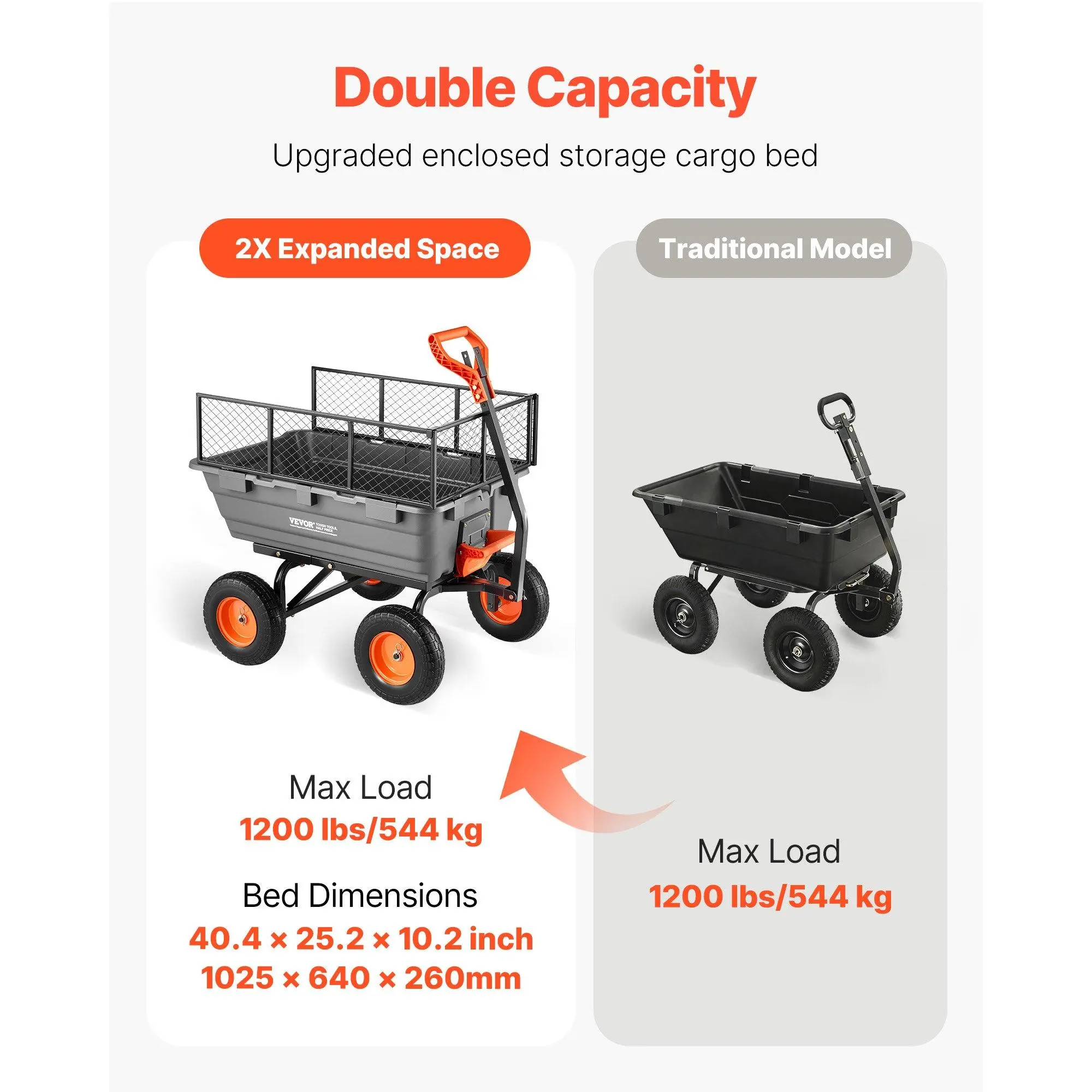 VEVOR Garden Dump Cart, 1200 lbs Poly Dump Cart, Garden Carts Dumps Wagon with Storage Fence, 2-in-1 Convertible Handle, 90 Quick-Dumps Mechanism, 180 Swivel Wheels, Yard Wagon for Plants, Soil